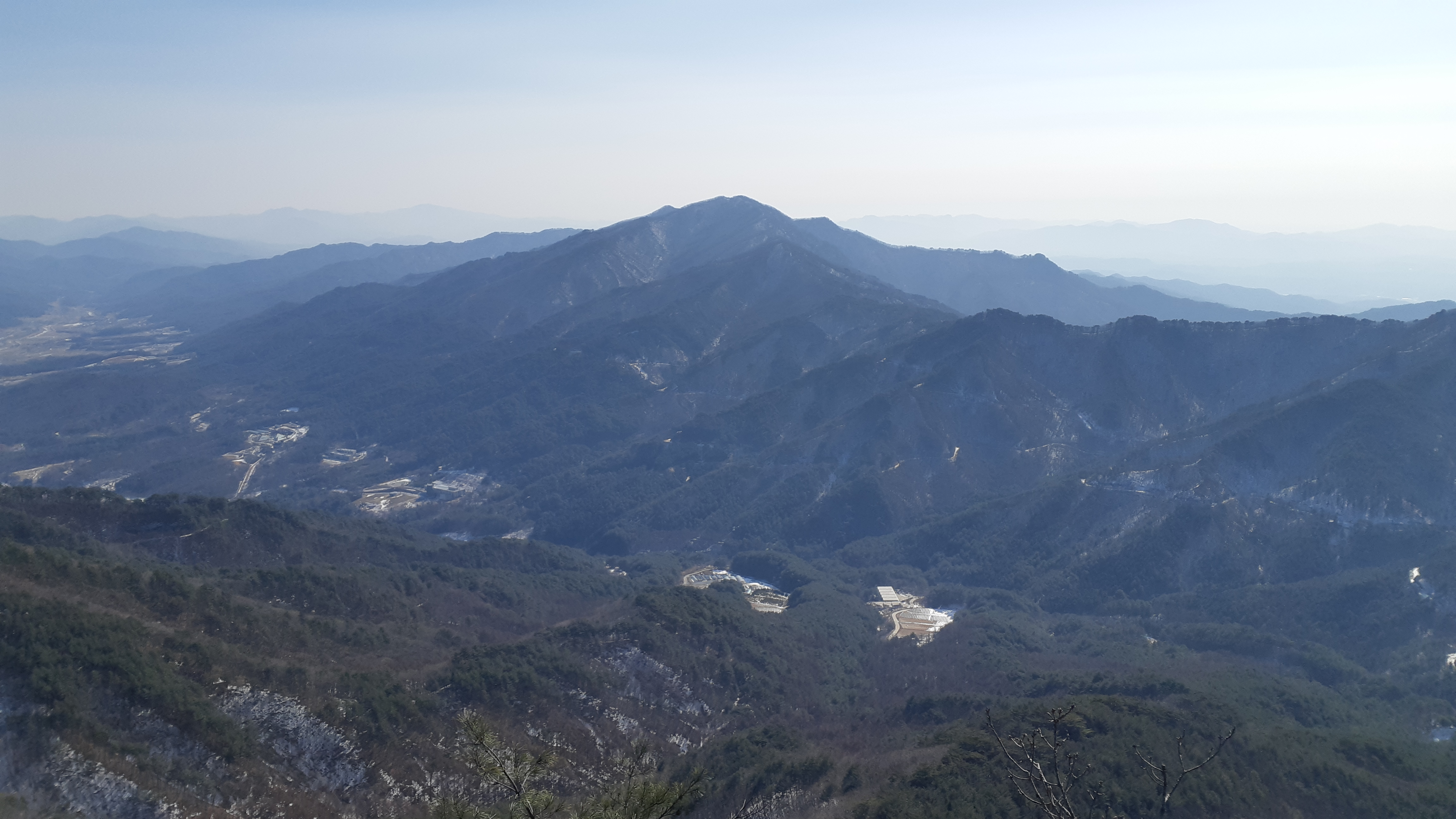 문수산 정상에서 바라본 백두대간 구룡산이 조망된다(15:05)