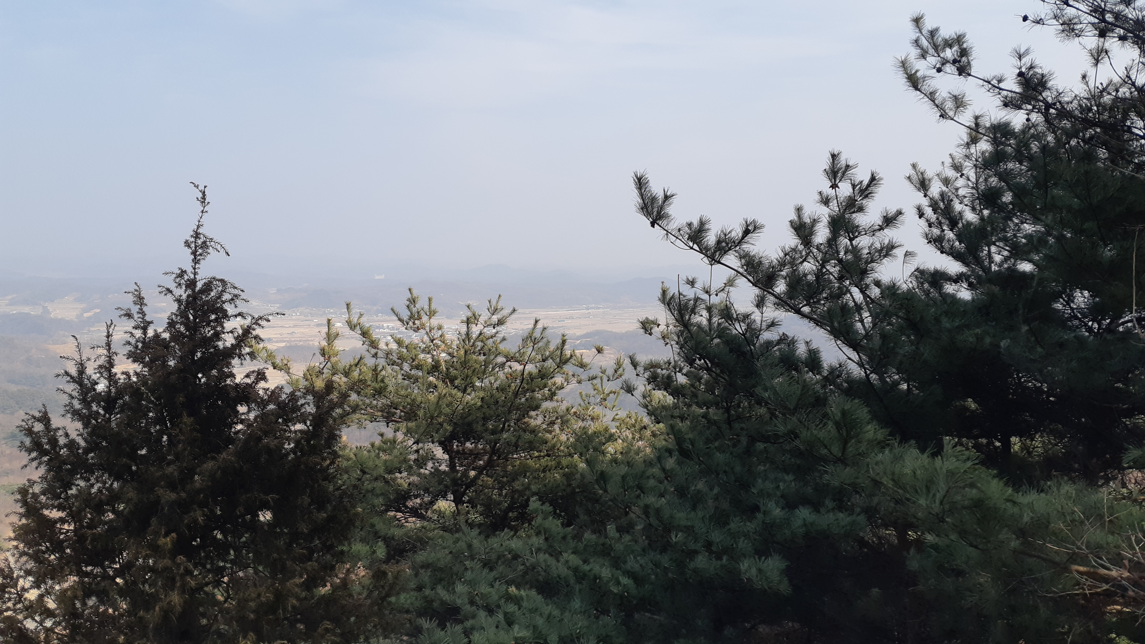 조망처에서 바라본 소백산 방향으로 미세먼지로 흐려 안타깝다(14:06)