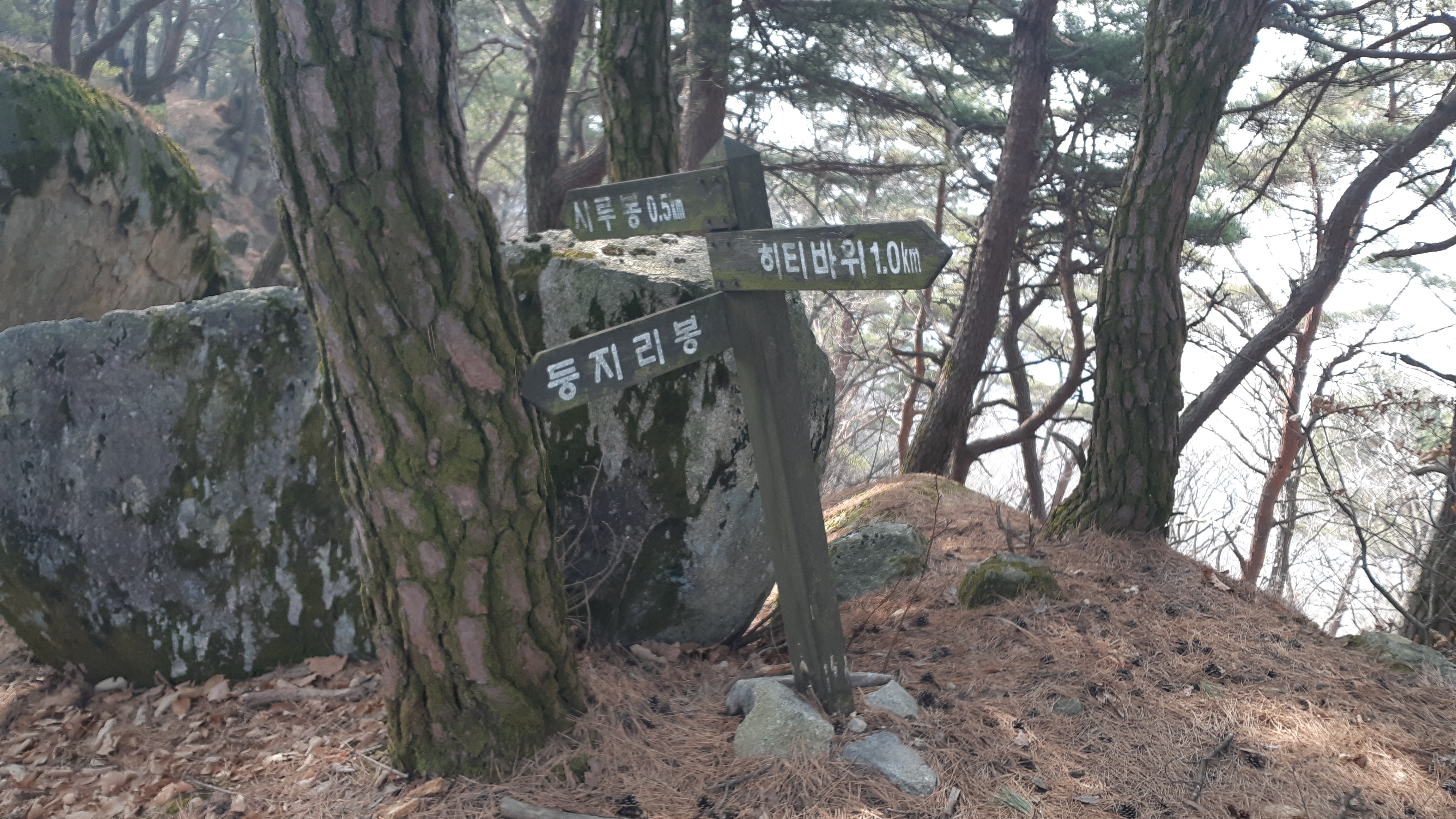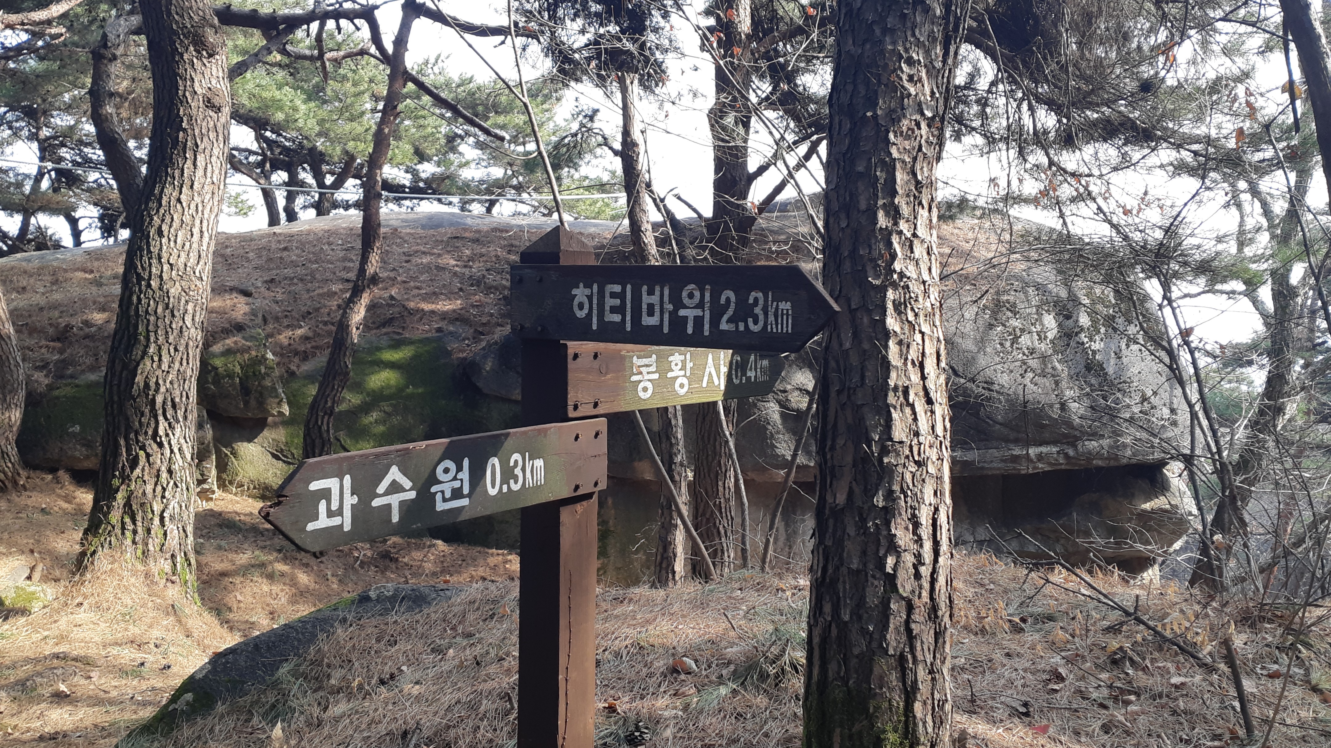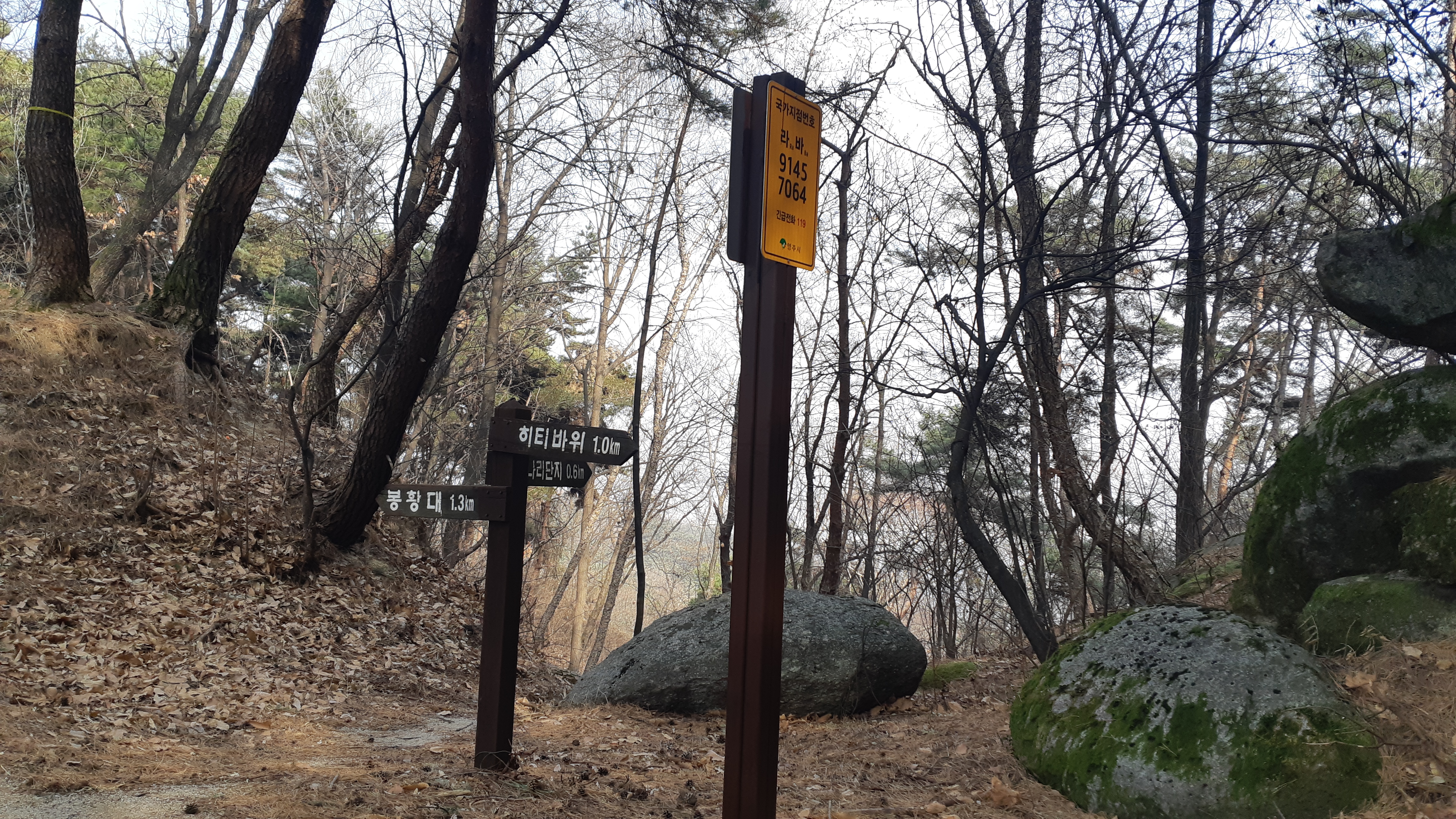 봉황대 갈림길의 이정표/국가지점번호 라바 9145 7064(13:47)