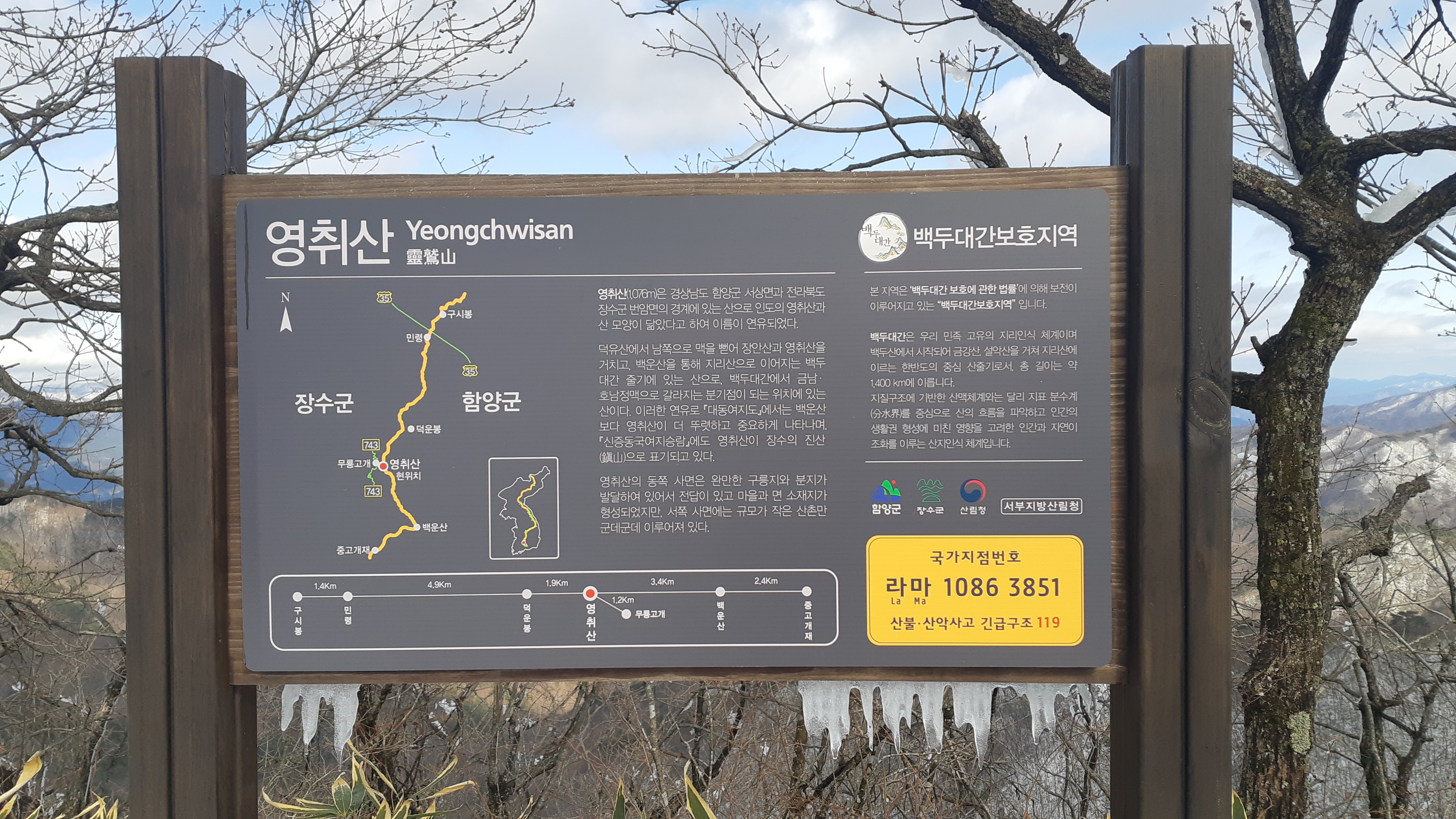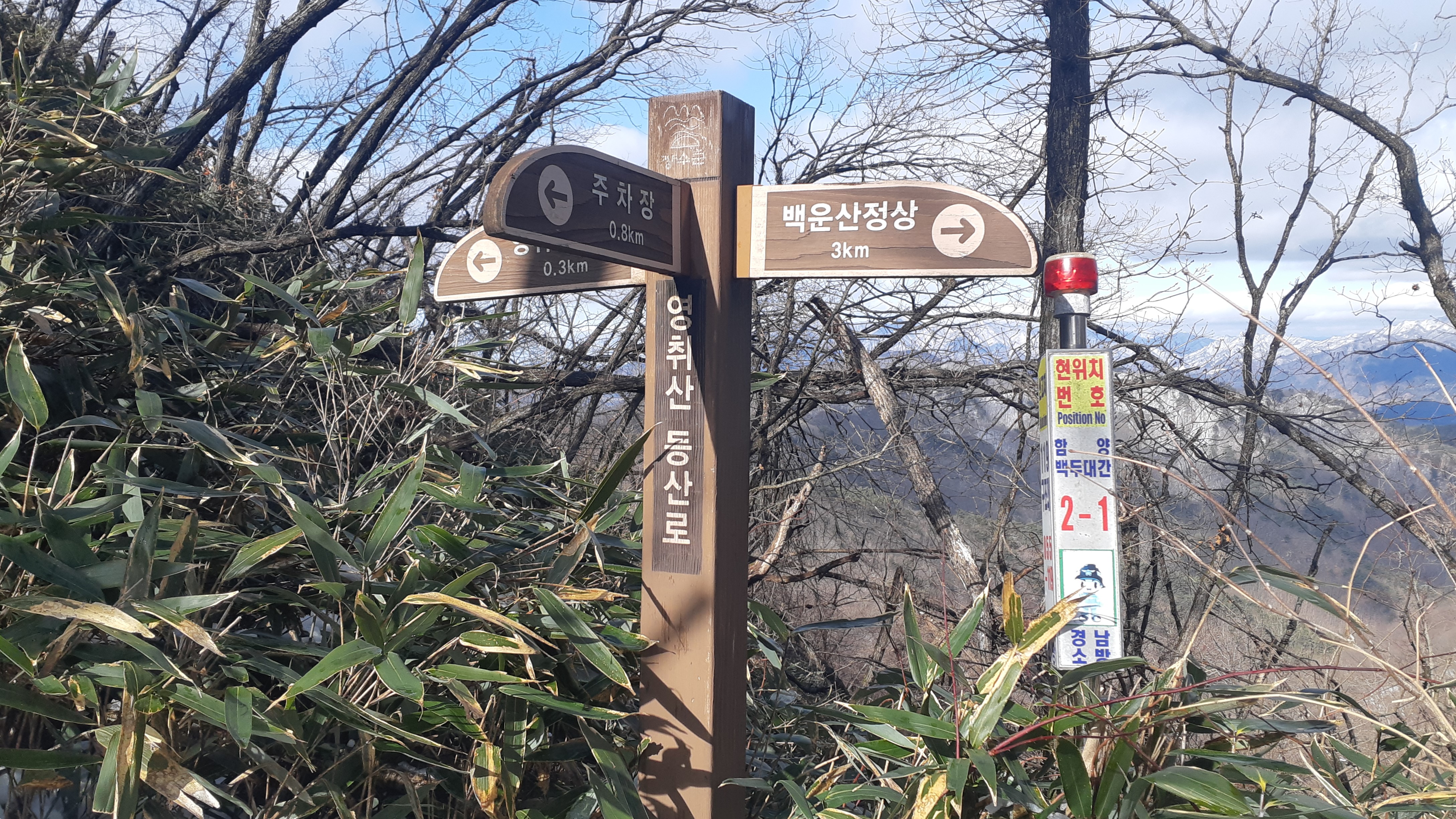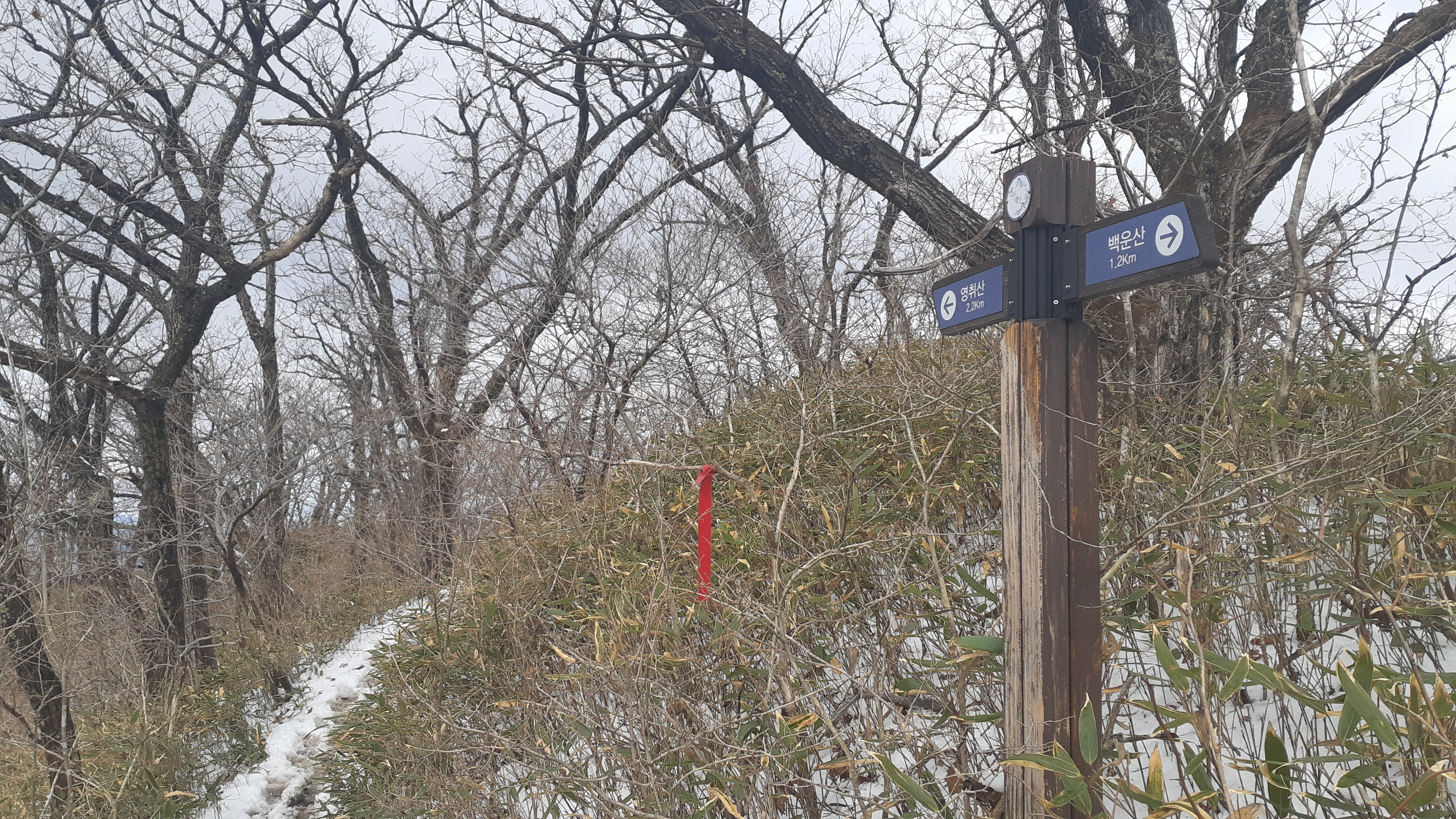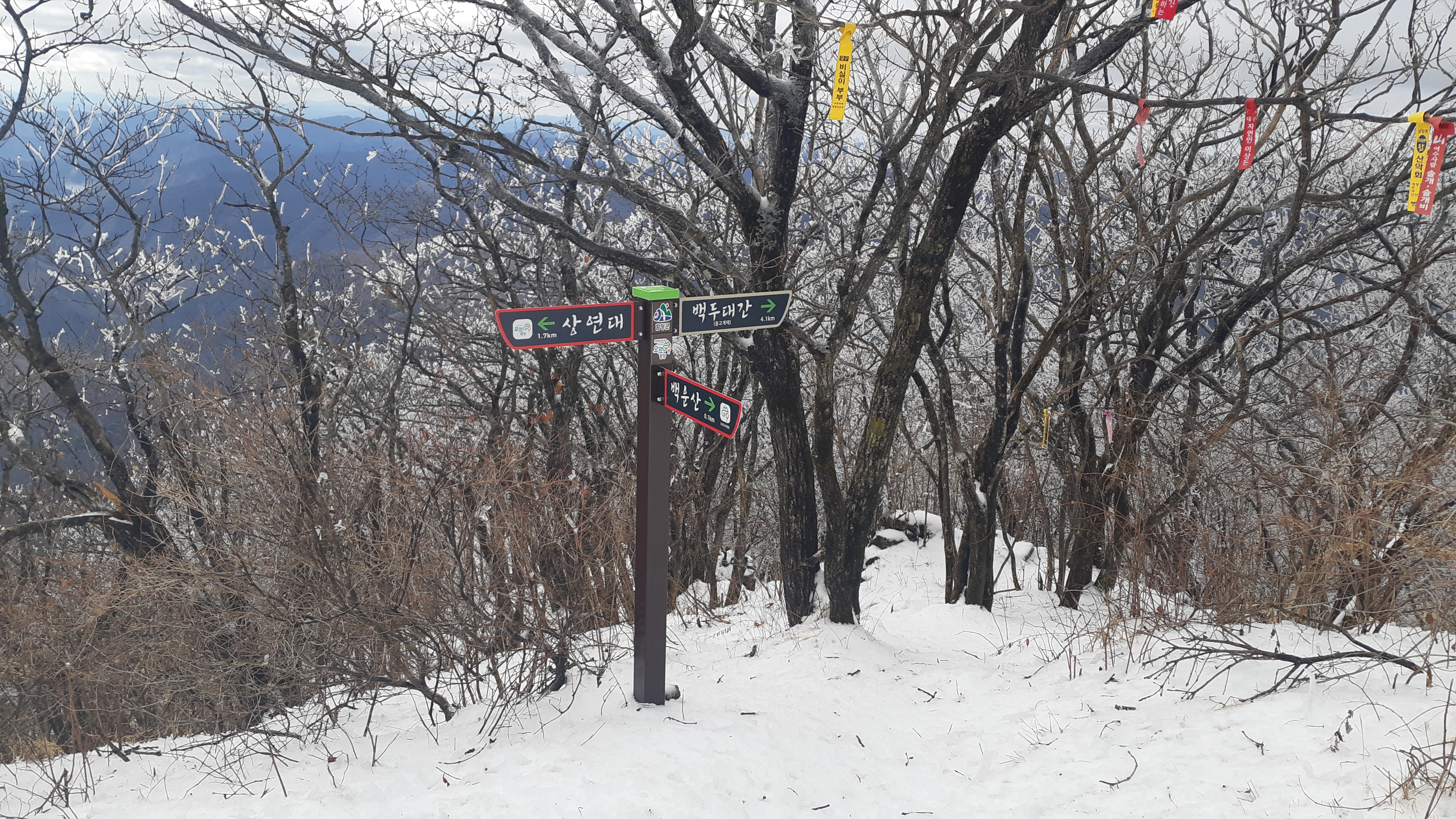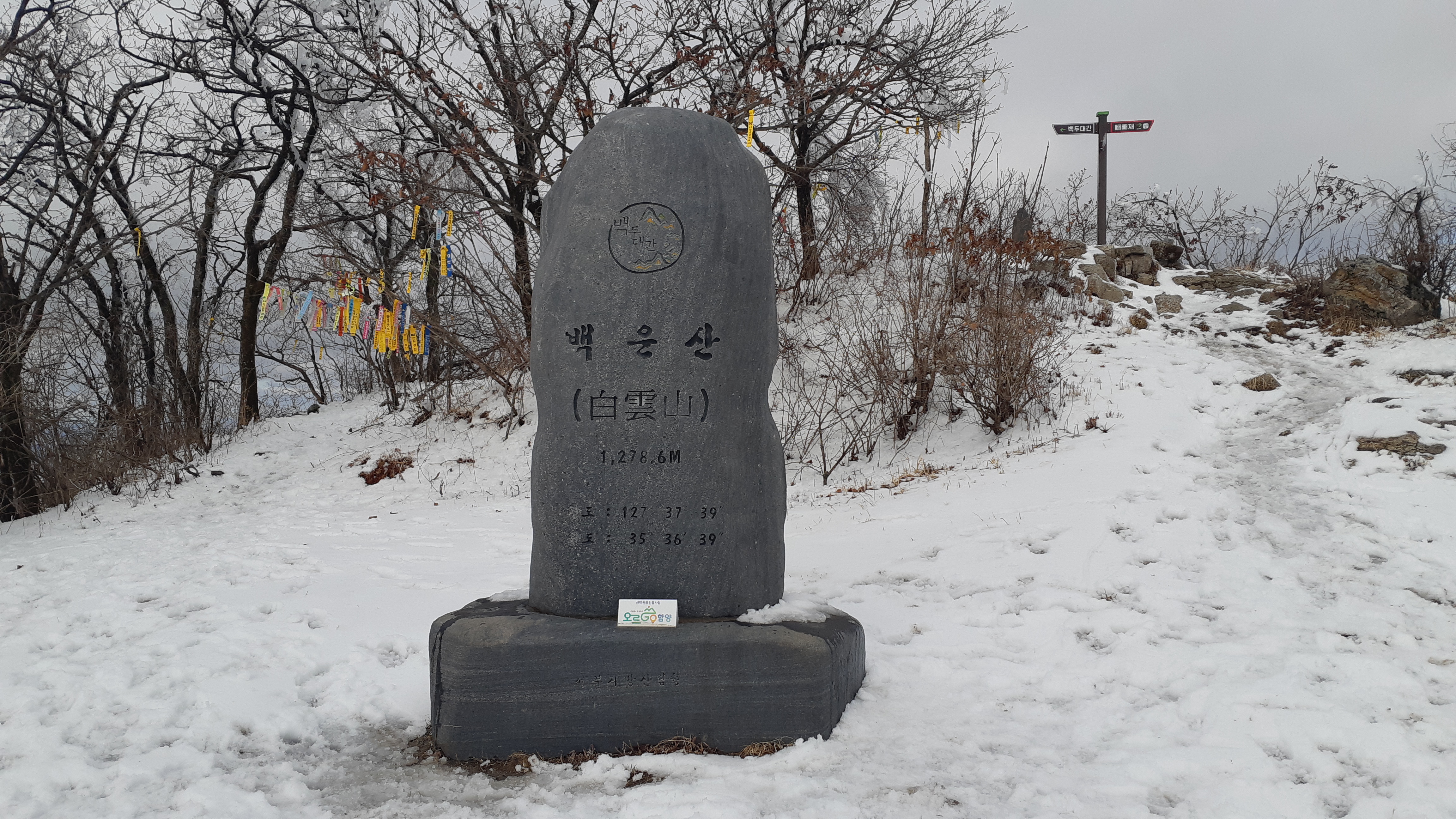 오늘은 참사랑산악회를 따라 경남 함양군과 전북 장수군에 걸쳐있는 백운산과 영취산으로 간다. 오늘 낮 기온이 10여도 가까이 된다고 하니 추위 걱정은 들었지만 어제내린 눈은 조금 조심을 하여야겠다. 부산 동래전철역에서 08시에 출발한 산악회 버스가 함양군 백전면과 서하면 갈림길 고갯마루인 빼빼재에 3시간10분여 걸려 도착한다. 빼빼재에서 오늘 오를 백운산 반대방향의 대봉산과 감투산 그리고 계관봉의 이정표가 보이는데 그곳으로는 2023년3월18일 찾았으니 벌써 3년이나 훌쩍 흘러버렸는데 정말 세월의 빠름은 뒤 돌아보면 저 멀리 달아나 숨어 버린다. 곧장 산행 채비를 갖추고 백전면 청년회에서 건립한 후매령(後梅嶺) 표석 뒤 데크계단을 오르면서 산행을 시작한다.