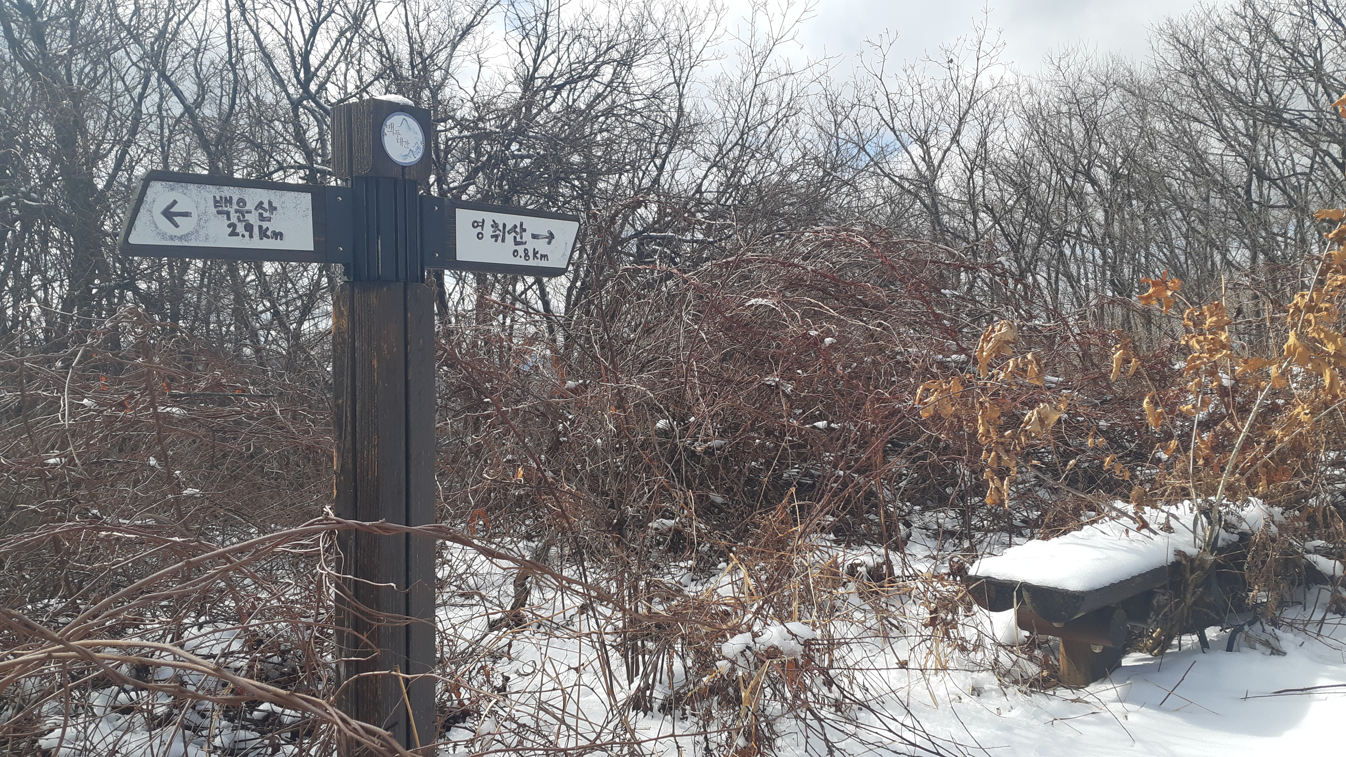 무룡고개 주차장 갈림길의 이정표(15:14)