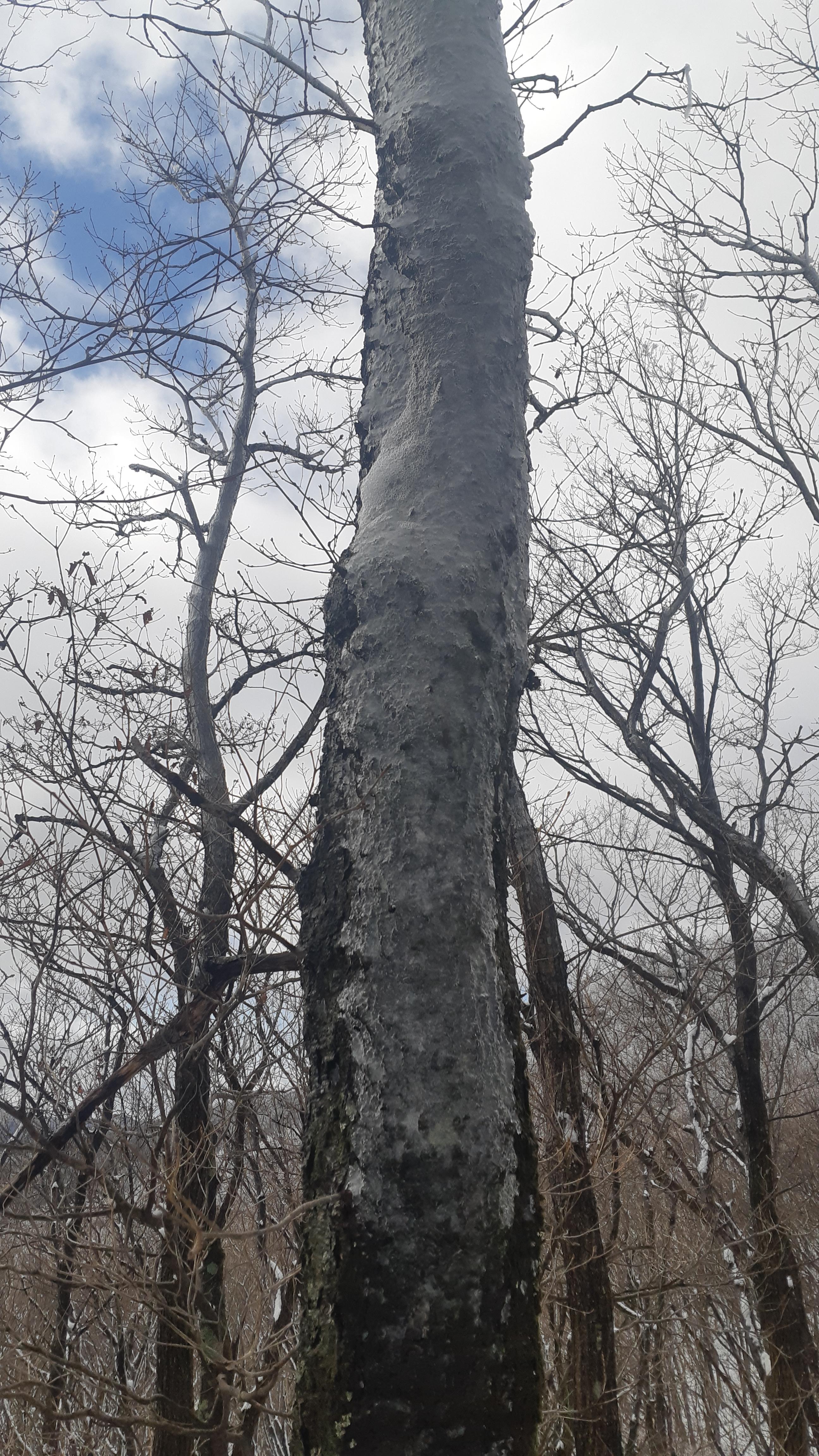 나무껍질에 얼음이 얼어 붙어있다 떨어져 다친 산객도 있었다(12:11)