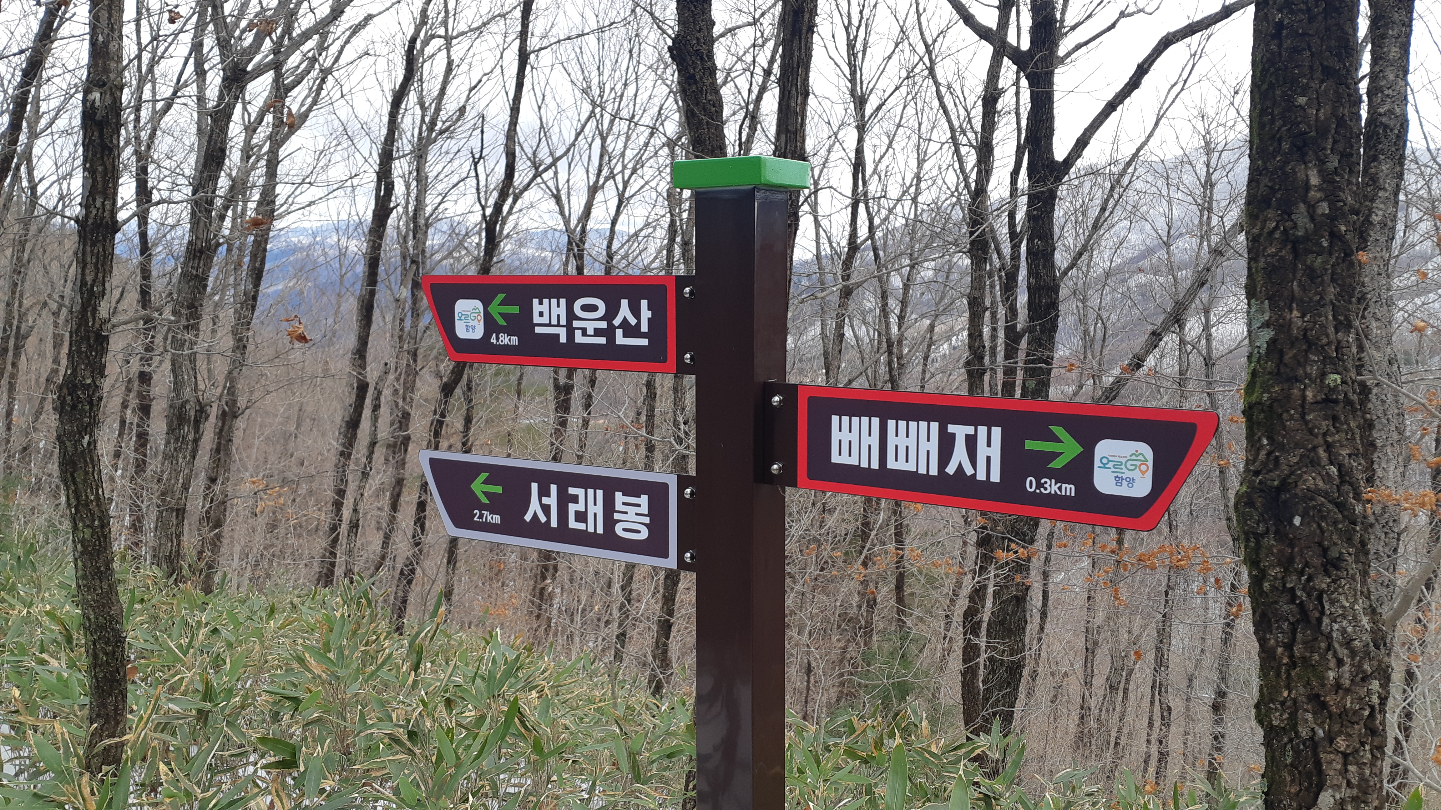 빼빼재에서 300m 오른 지점의 이정표(11:27)