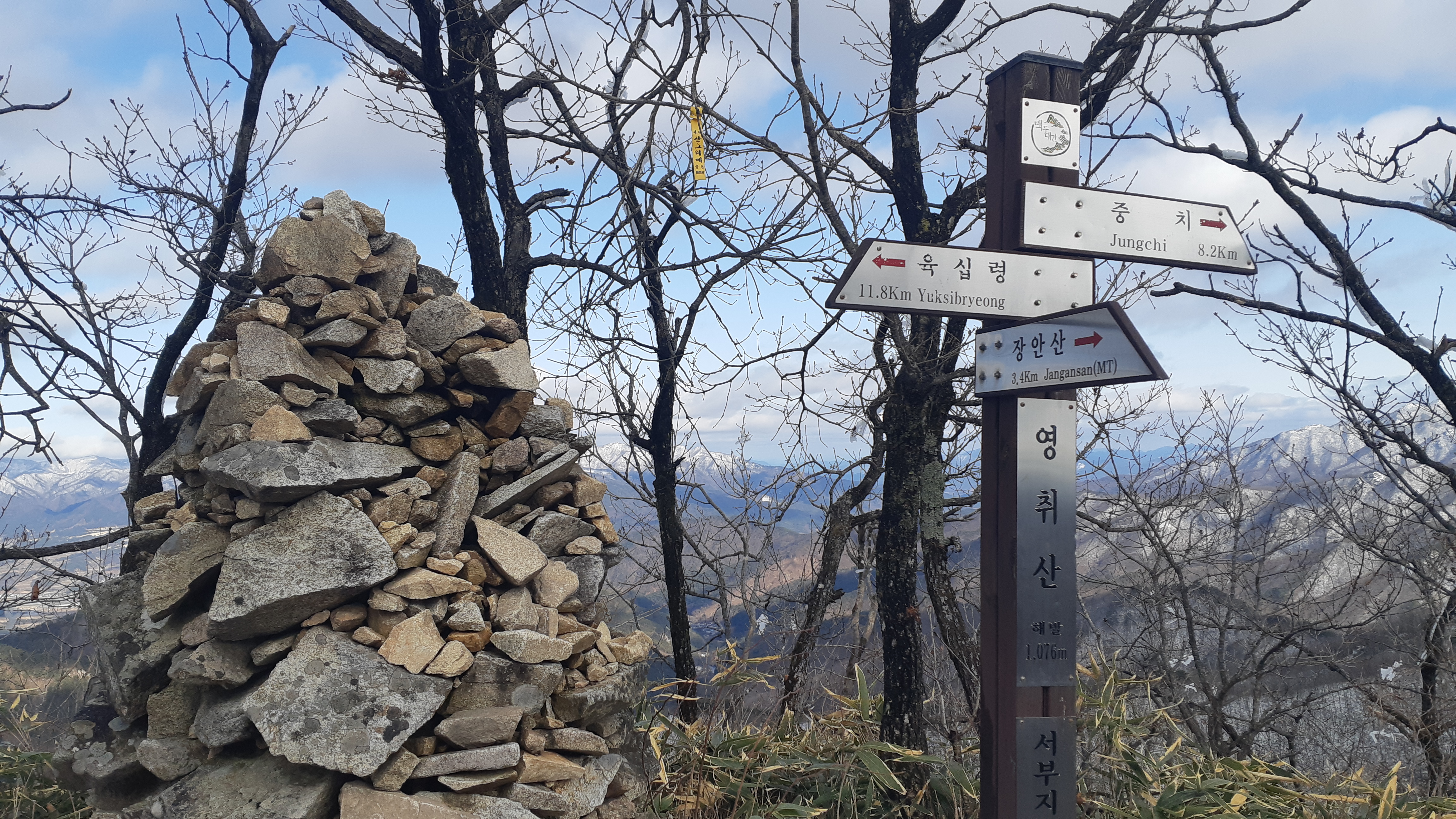 영취산 정상의 이정표/육십령까지 자그마치 11.8km다(15:24)