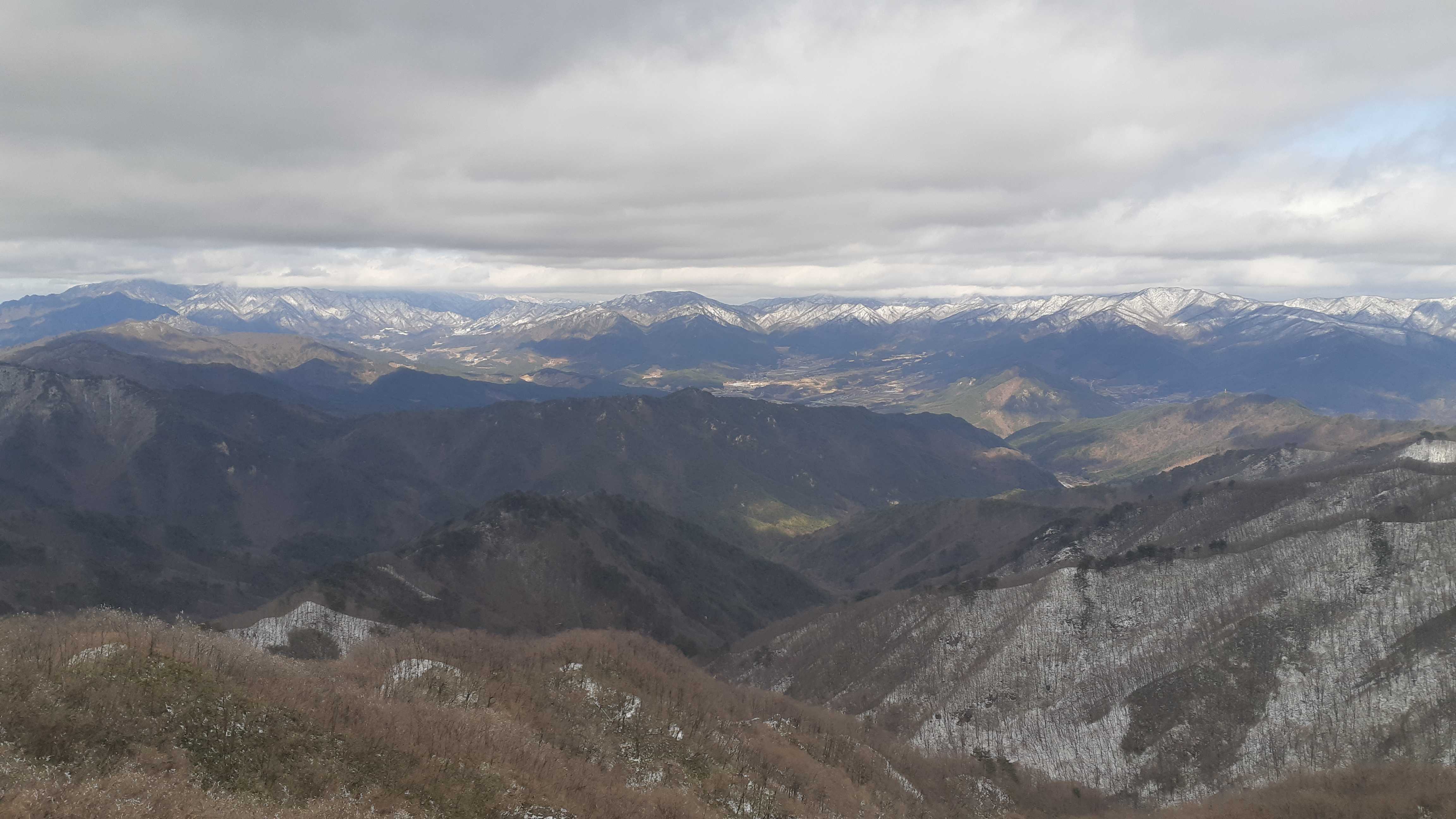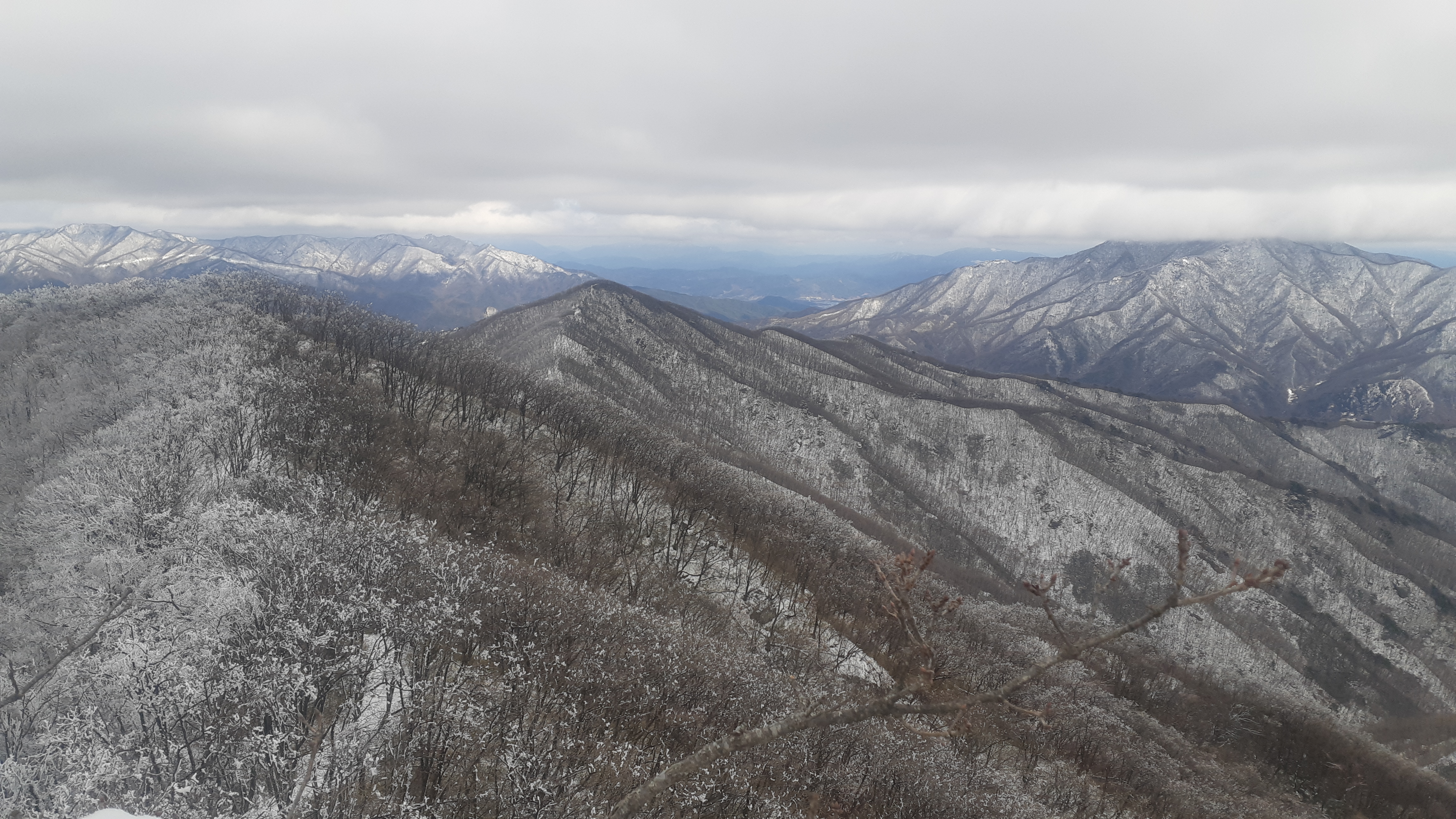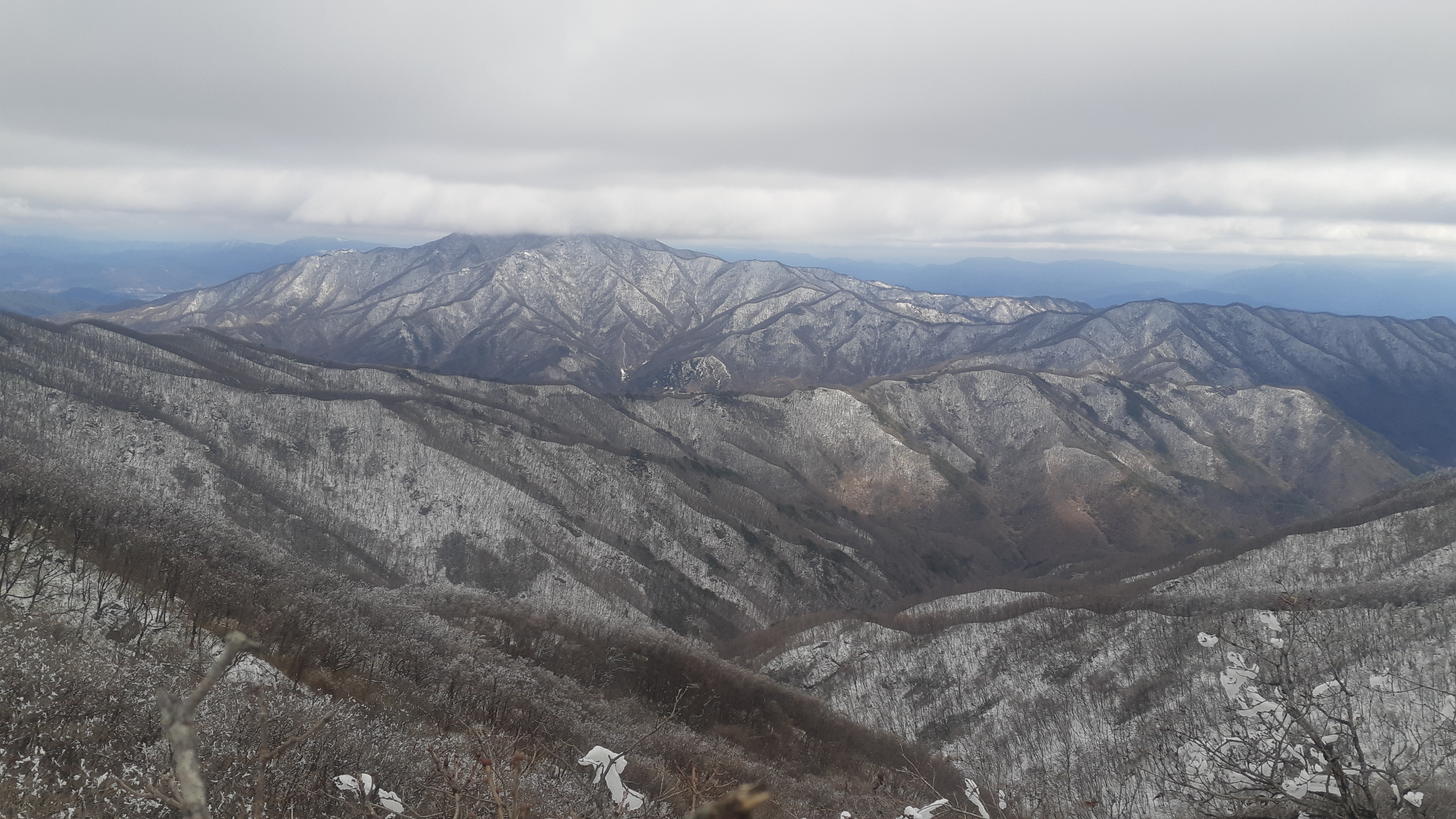 지나온 능선과 중앙부는 빼빼재를 건너 감투산과 대봉산으로 이어지는 능선이다(13:14)