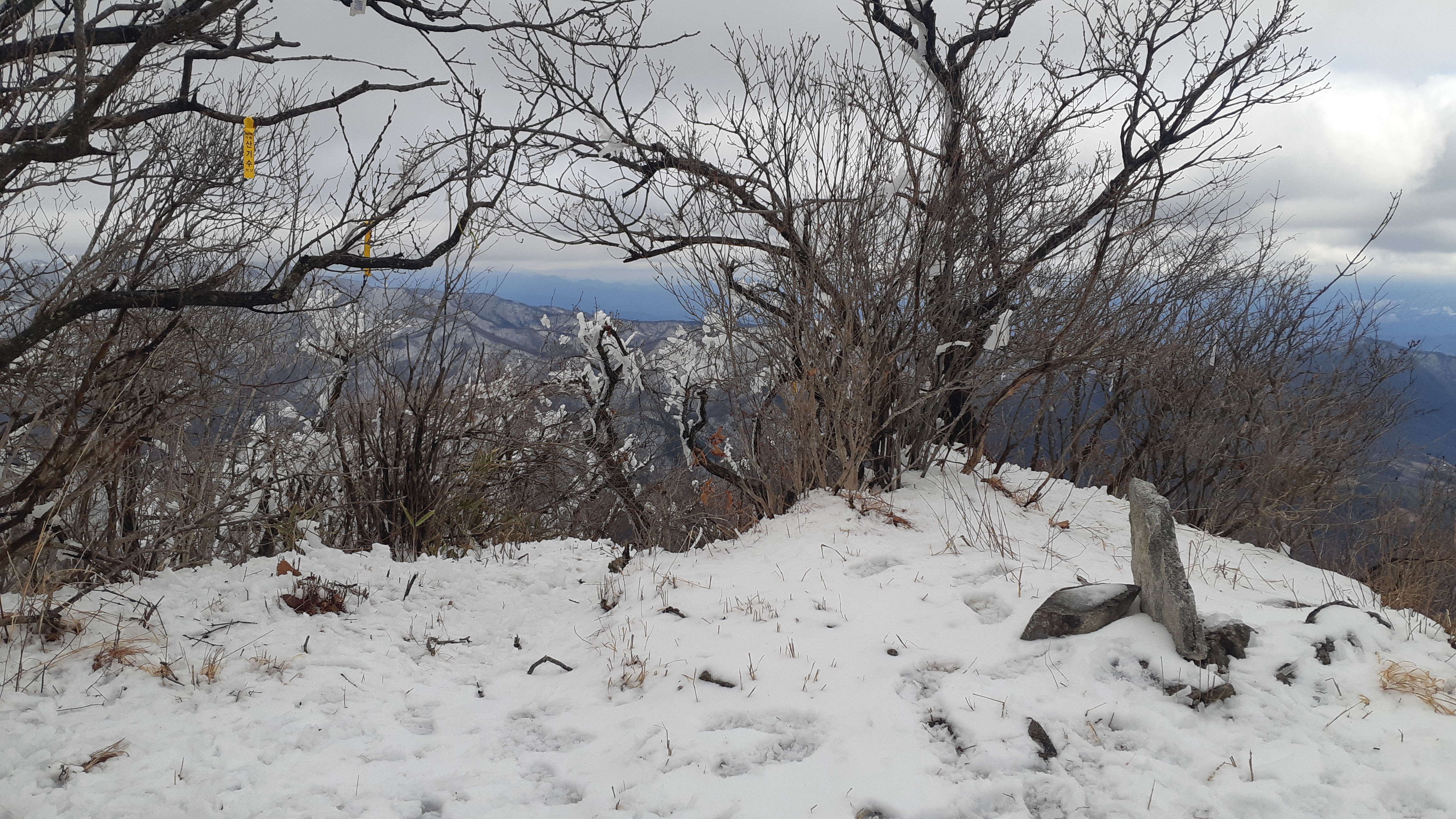 빼빼재를 출발한지 1시간 조금 더 걸린 3km 지점에 서래봉이란 이정표가 서있고, 얼음 꽃 만발한 산길을 서서히 올라간다. 20여분 진행하면 지도상의 서래봉인데 누군가가 조그마한 돌에 서래봉이라 적어 두었다. 남쪽으로는 지리산 주능선과 곧 진행할 끝봉~중봉~백운산으로 이어지는 능선이 보이고 백운암 갈림길 안부에 내려선다. 안부에서 잠시 올라서면 백두대간 서봉과 남덕유산에서 이어지는 진양기맥의 칼날봉과 월봉산을 지나 금원산으로 이어지는 능선들과 앞쪽으로 거망산에서 황석산으로 이어지는 한 폭의 수묵화가 펼쳐진다.