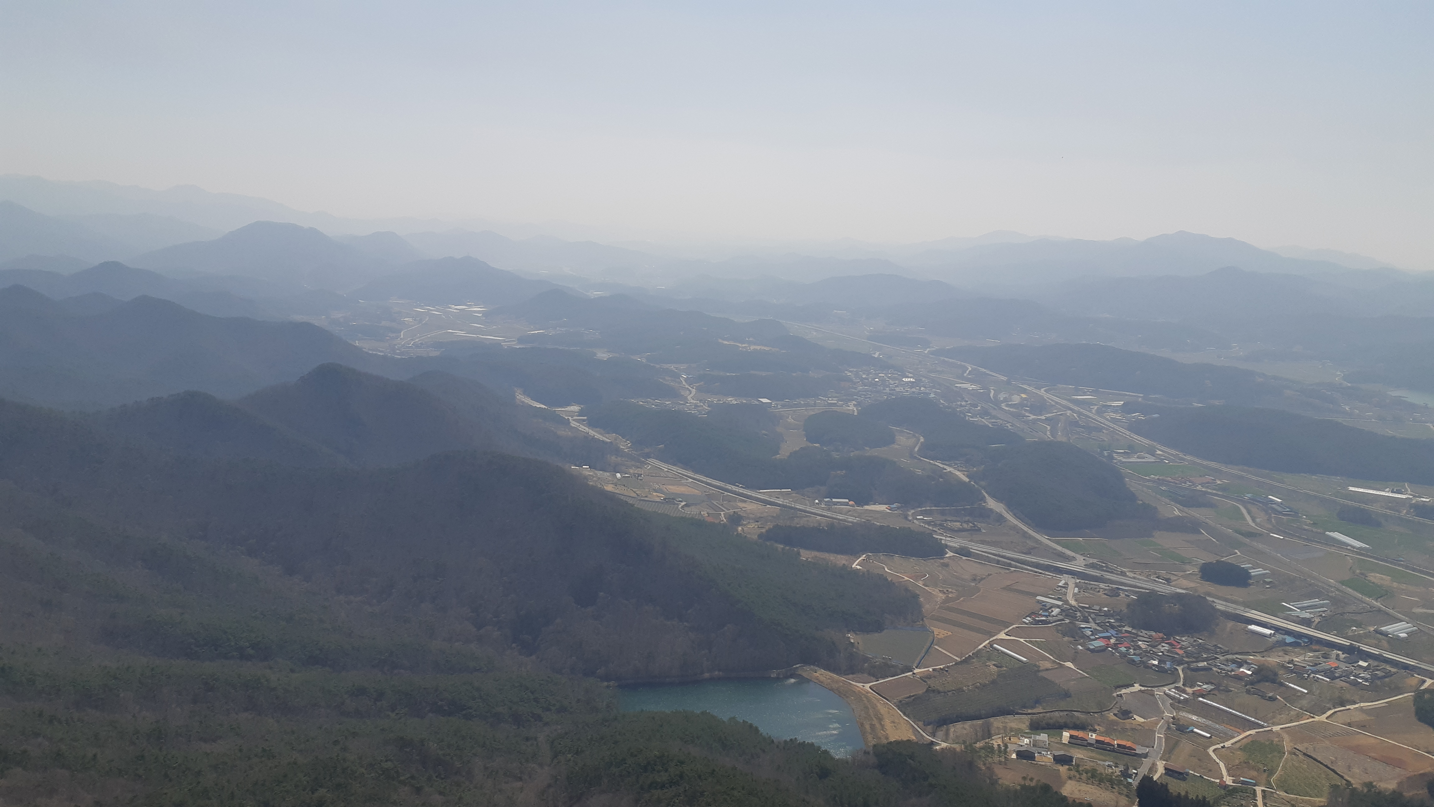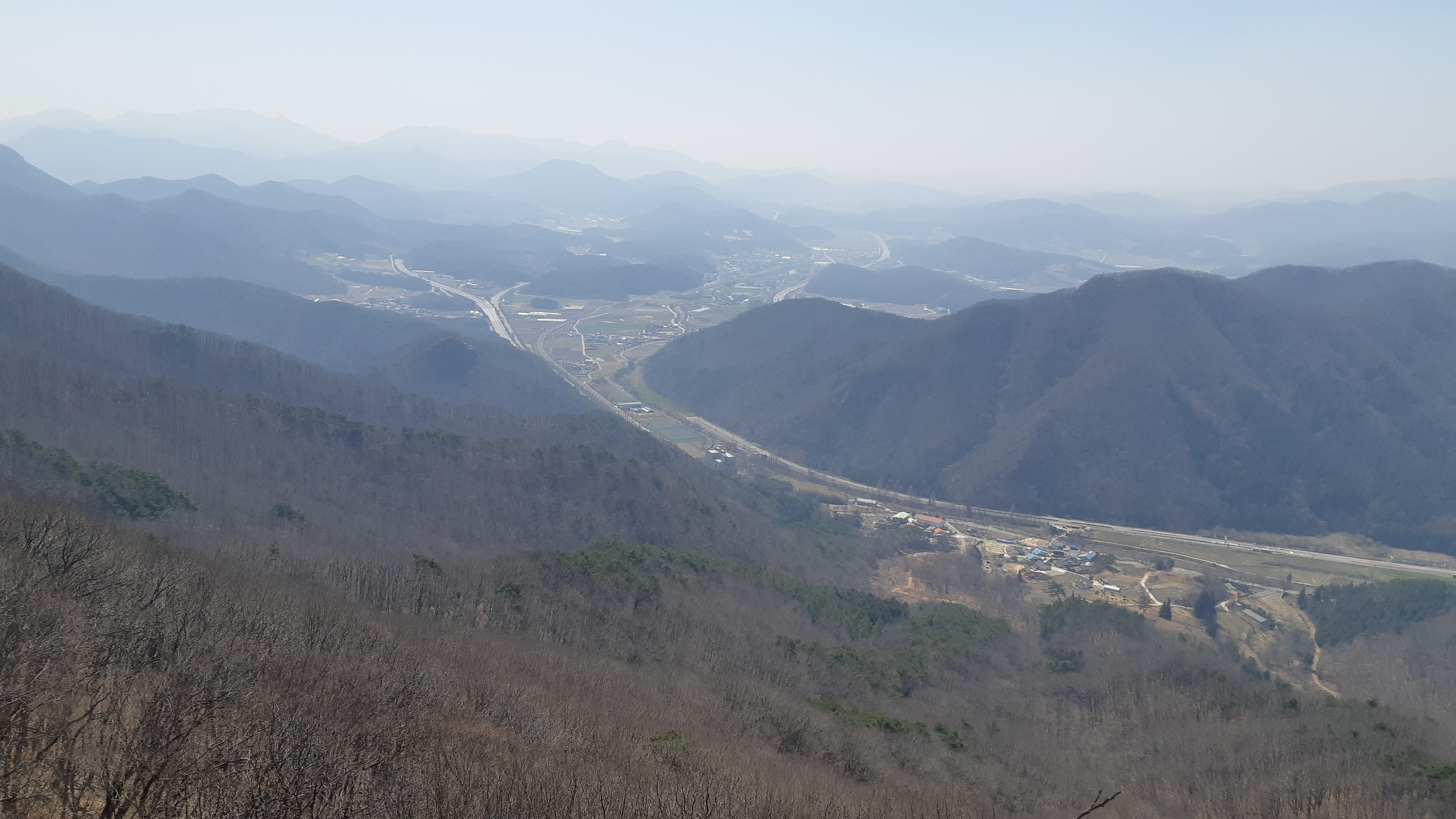 시원하게 뻗어가는 호남고속도로와 호남고속철도가 내려다 보인다(11:53)