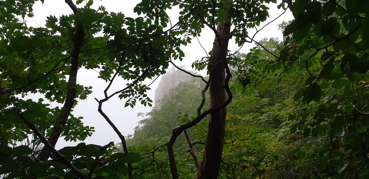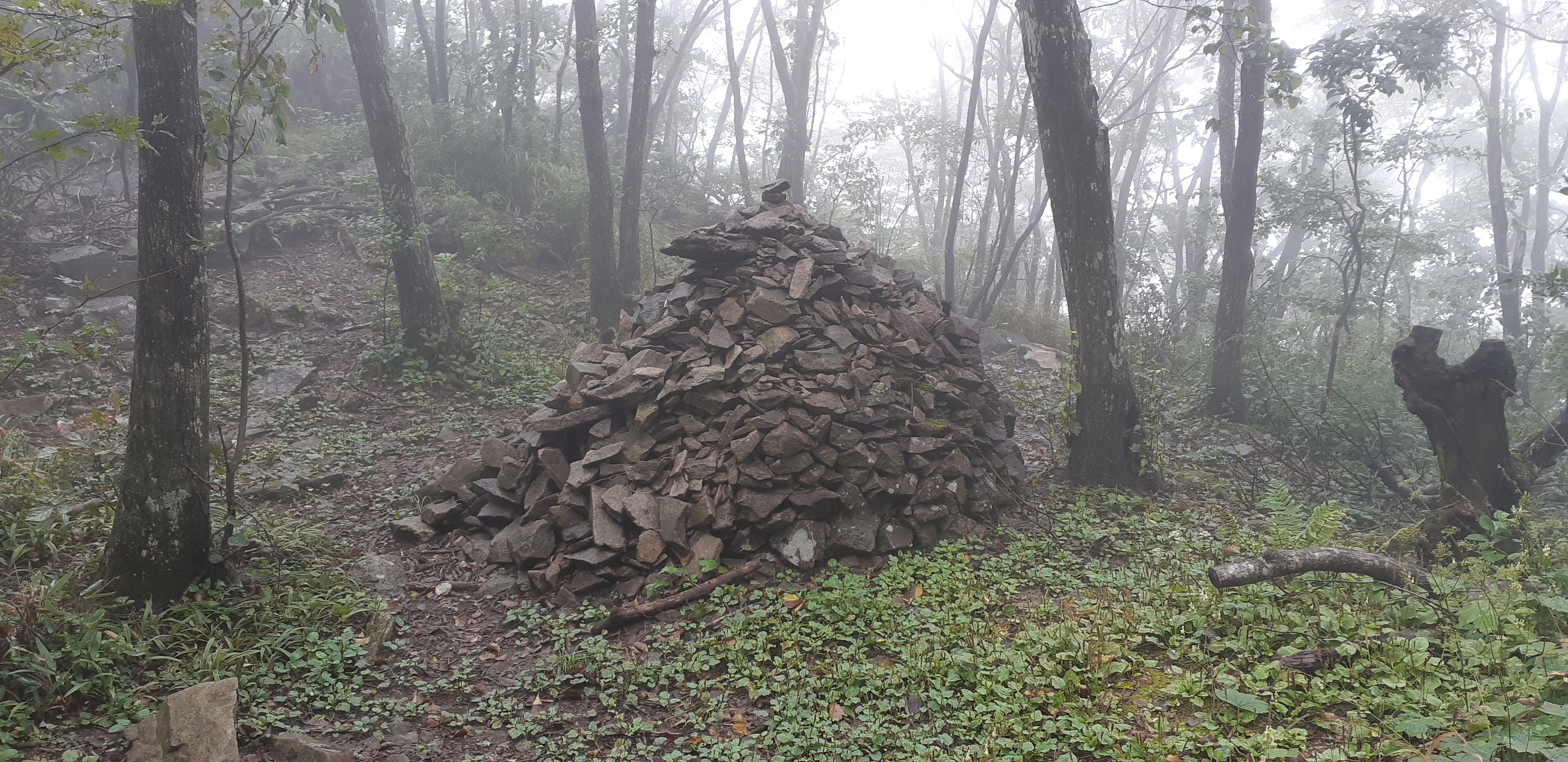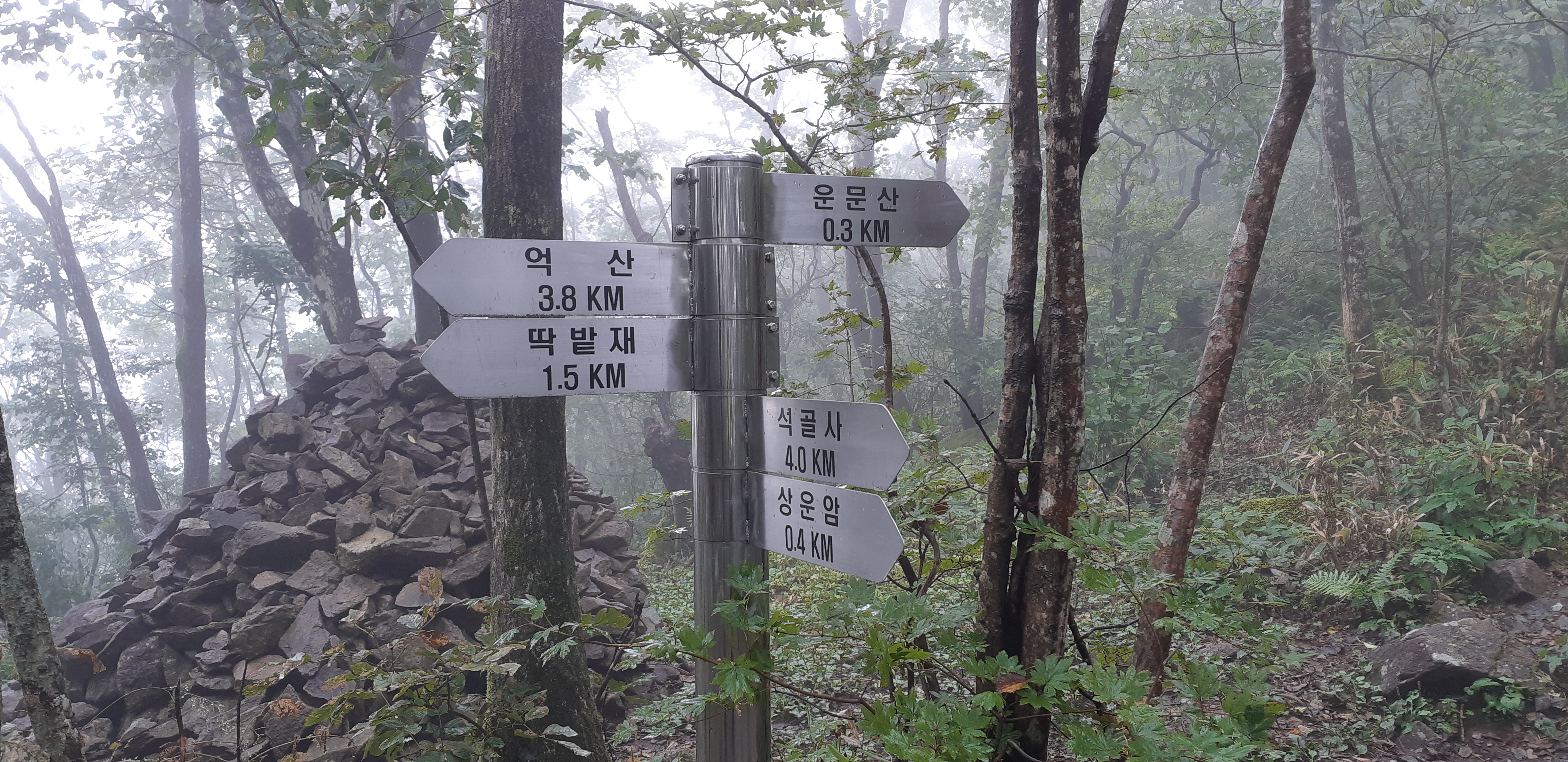 오늘도 운문산 언저리를 찾기 위해 새벽 일찍 집을 나선다. 먼저 양산시 원동의 배내 약수터에서 생수를 담고 밀양댐을 휘감고 돌고 도래재를 넘어 얼음골의 하양마을 회관앞에 주차를 하고 운문산을 향하여 산행을 시작한다. 지난주 장군봉에 오를 때와는 판이하게 기온차가 나는데 바람이 불어오니 한기마저 느껴지기도 하니 계절의 변화는 그 누구도 붙잡지도 막아서지도 못한다. 8~9부 능선에 거의 오르니 운무가 밀려오고 부서진 움막이 보이는데 주위에는 쓰레기가 늘부러져있어 아쉬움도 남았다. 또 다른 움막이 보이고 그곳 오른쪽 희미한 바위 암릉길을 돌아올라 함화산을 찍고 두런두런 소리가 들리는 운문산 정상에 도착한다. 정상에서 사진 몇 장을 담고 바로 아래 헬기장에서 간단하게 간식을 탐하고 소머리바위로 발걸음을 옮긴다.
