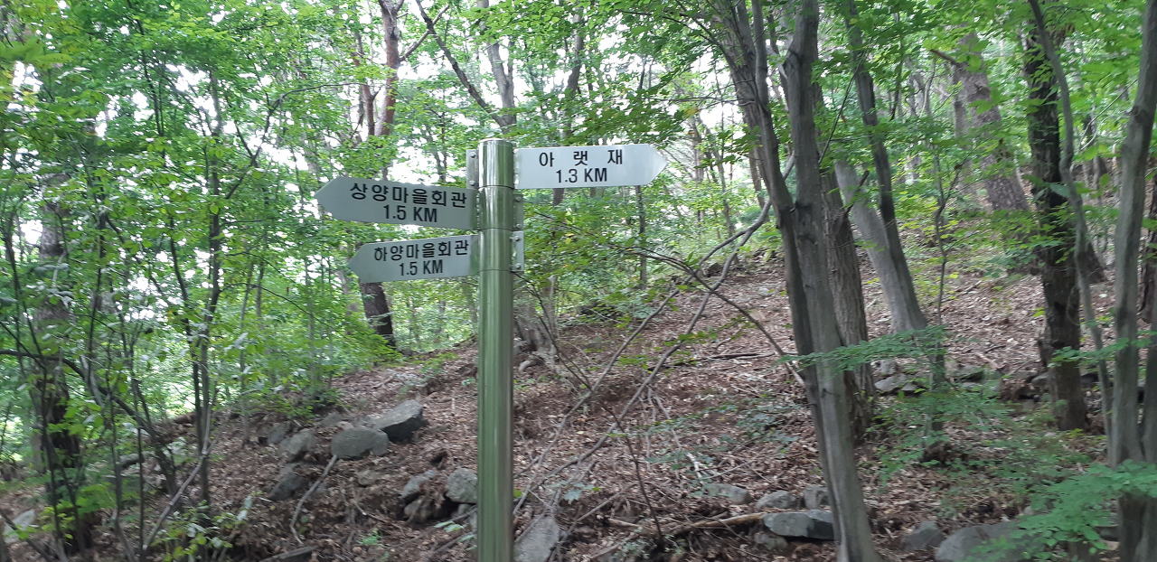 12:17 아랫재샘터 – 12:25 아랫재 – 12:28샘터 – 12:48 상양마을갈림길 – 12:57 시멘농로 – 13:10 하양마을