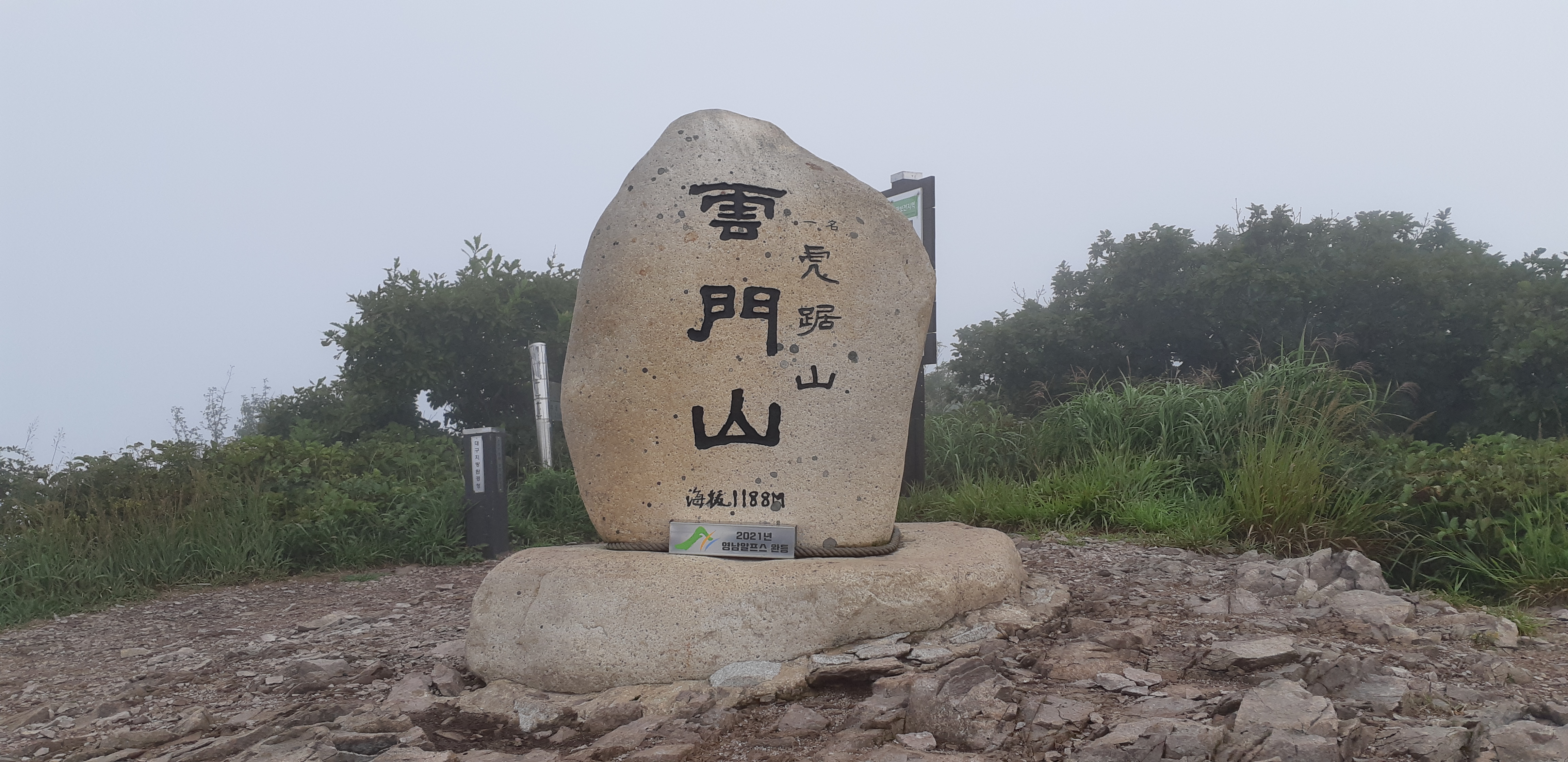 운문산 정상에는 운무에 가려 주위는 살필수가 없는게 많은 아쉬움으로 남는다(09:18)