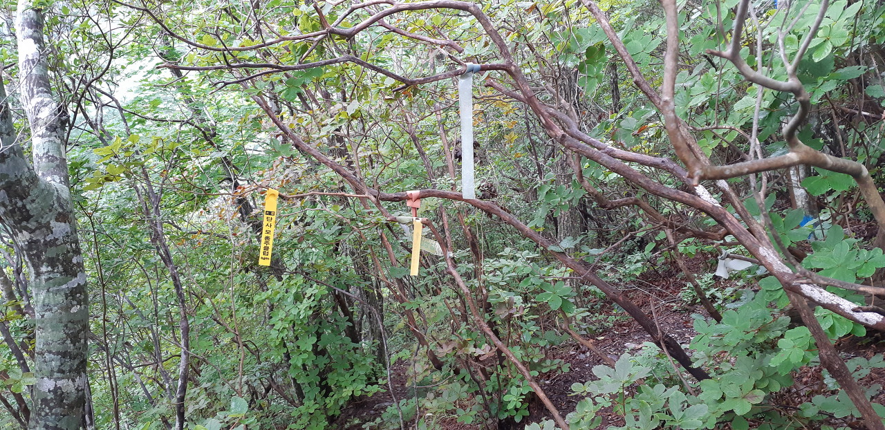 내림길은 희미하고 산죽으로 길 찾기가 힘이든다(11:49)