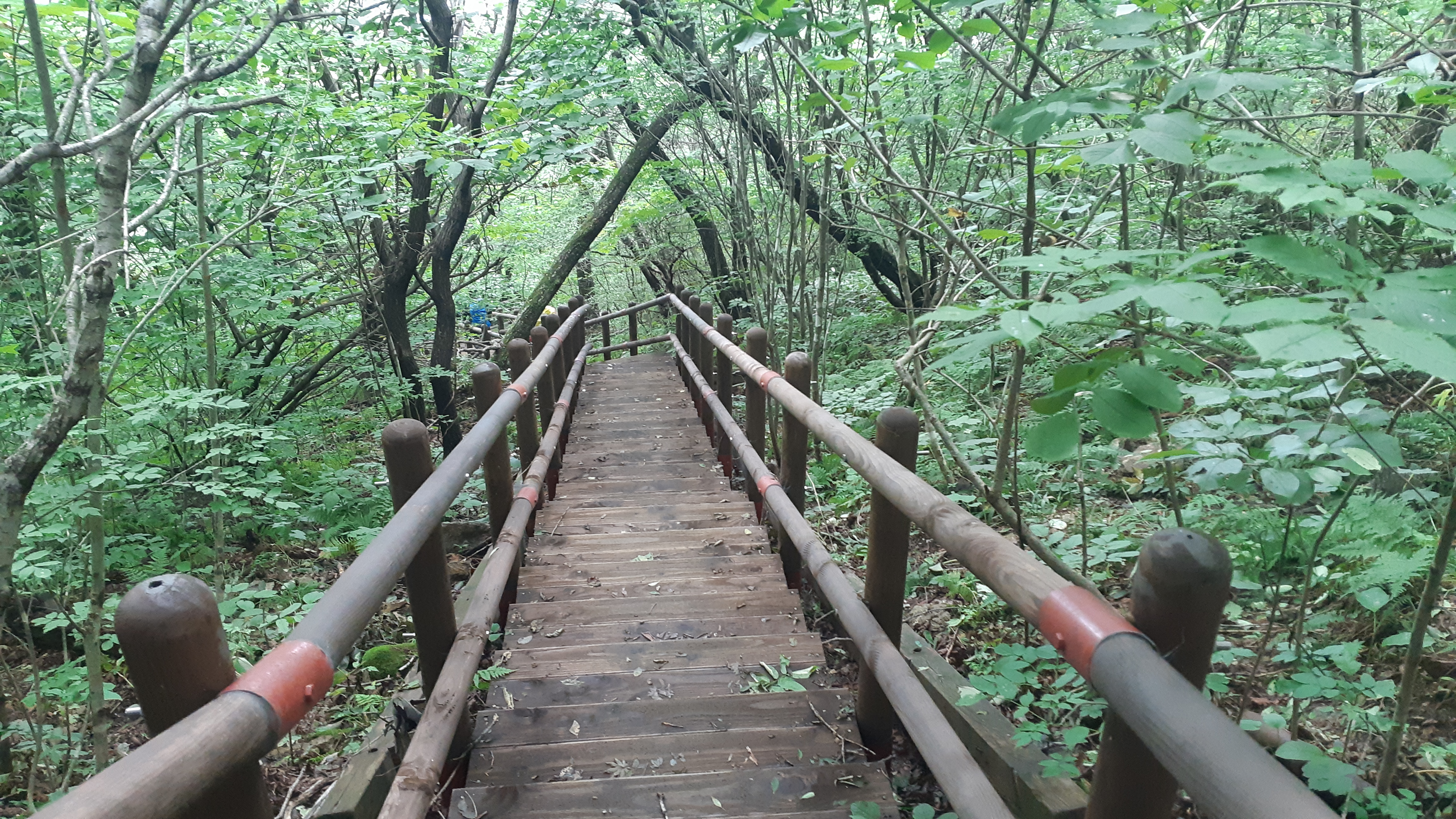 화개재에서 뱀사골계곡으로 내려서는 계단(14:31)