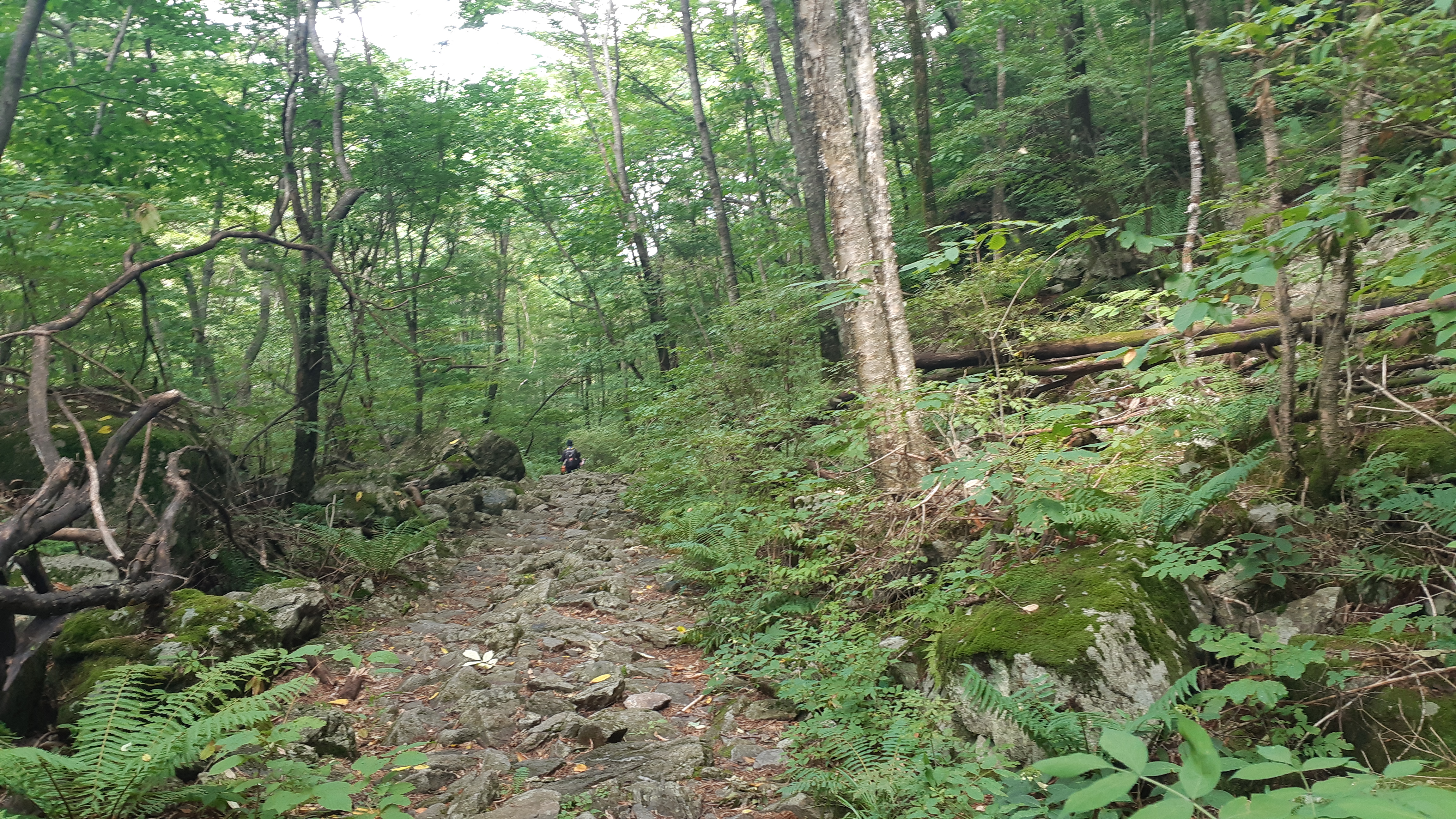 뱀사골계곡으로 내려가는 산길은 돌길이라 미끄럽고 울퉁불퉁하여 쉬운 산길은 아니다(14:59)
