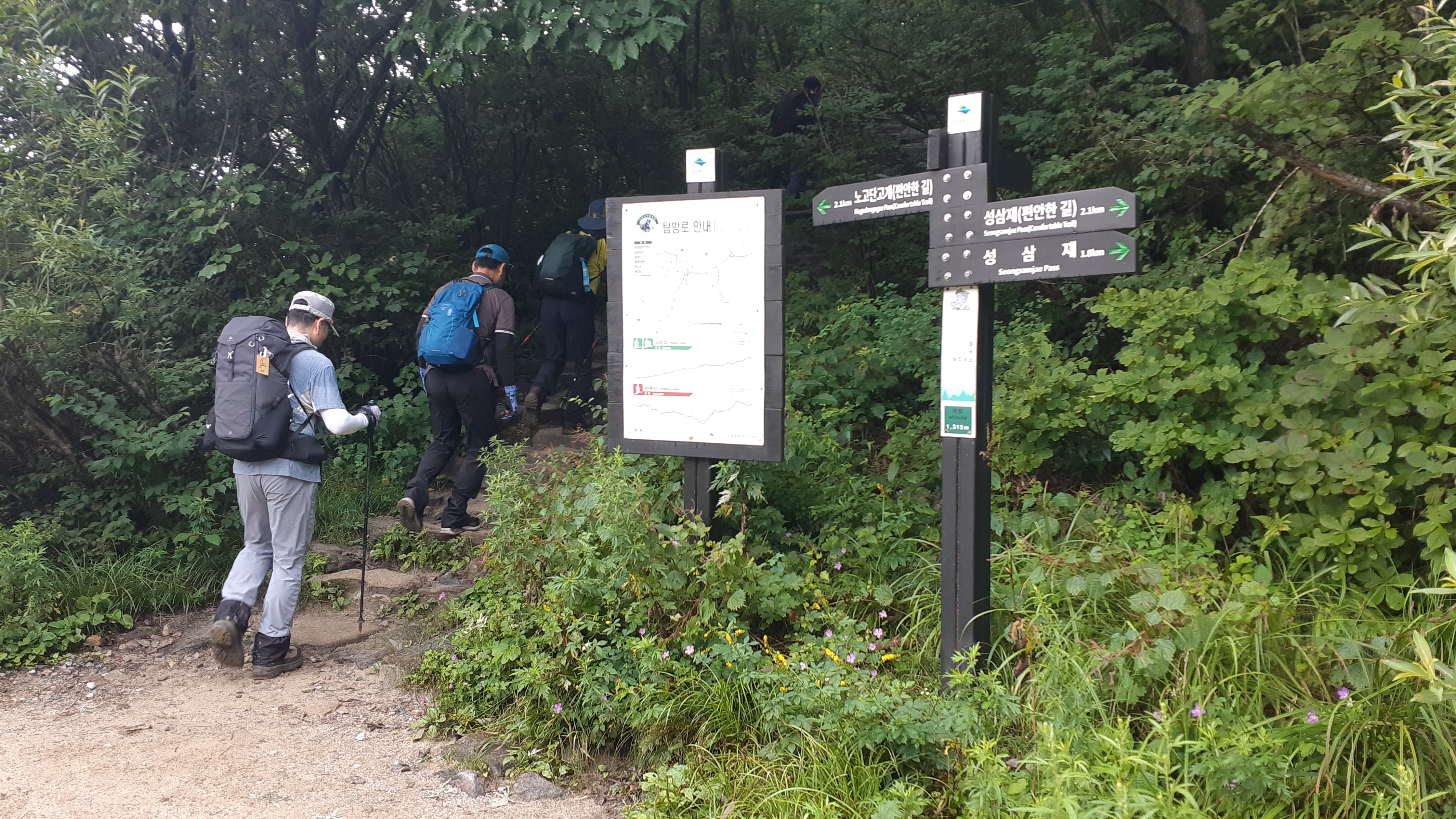 오늘은 부산해송산악회를 따라 지리산 반야봉으로 간다. 산행인원이 많아 1호와 2호에 나누어 승차하여 부산을 출발한 버스 두 대가 3시간20여분 걸려 성삼재에 도착한다. 이곳 성삼재는 지방도 861호로 구례군 산동면에 위치한 곳으로 지리산으로 종주를 위한 주요 지점이다. 성삼재휴게소 앞에서 내려 주차장을 지나 곧장 산행에 나선다. 오늘 산행은 성삼재를 출발하여 노고단과 반야봉을 거쳐서 뱀사골로 하산 하는 약20km가량 되는 장거리이다. 지리산 종주산행(성삼재~천왕봉~유평리)도 여러 번 하였고, 2002년8월24일 백두대간 상행시 중산리~노고단대피소, 2016년8월8~9일 백두대간 하행시 성삼재~중산리, 그리고 2008년8월16~17일 화엄사~대원사 종주와 2011년8월14~15일 성삼재~천왕봉~성삼재 왕복종주등 여러 번 다녔다. 하지만 고희(古稀) 또는 종심(從心)이란 70대에 들어서는 첫 산행인 셈이다.