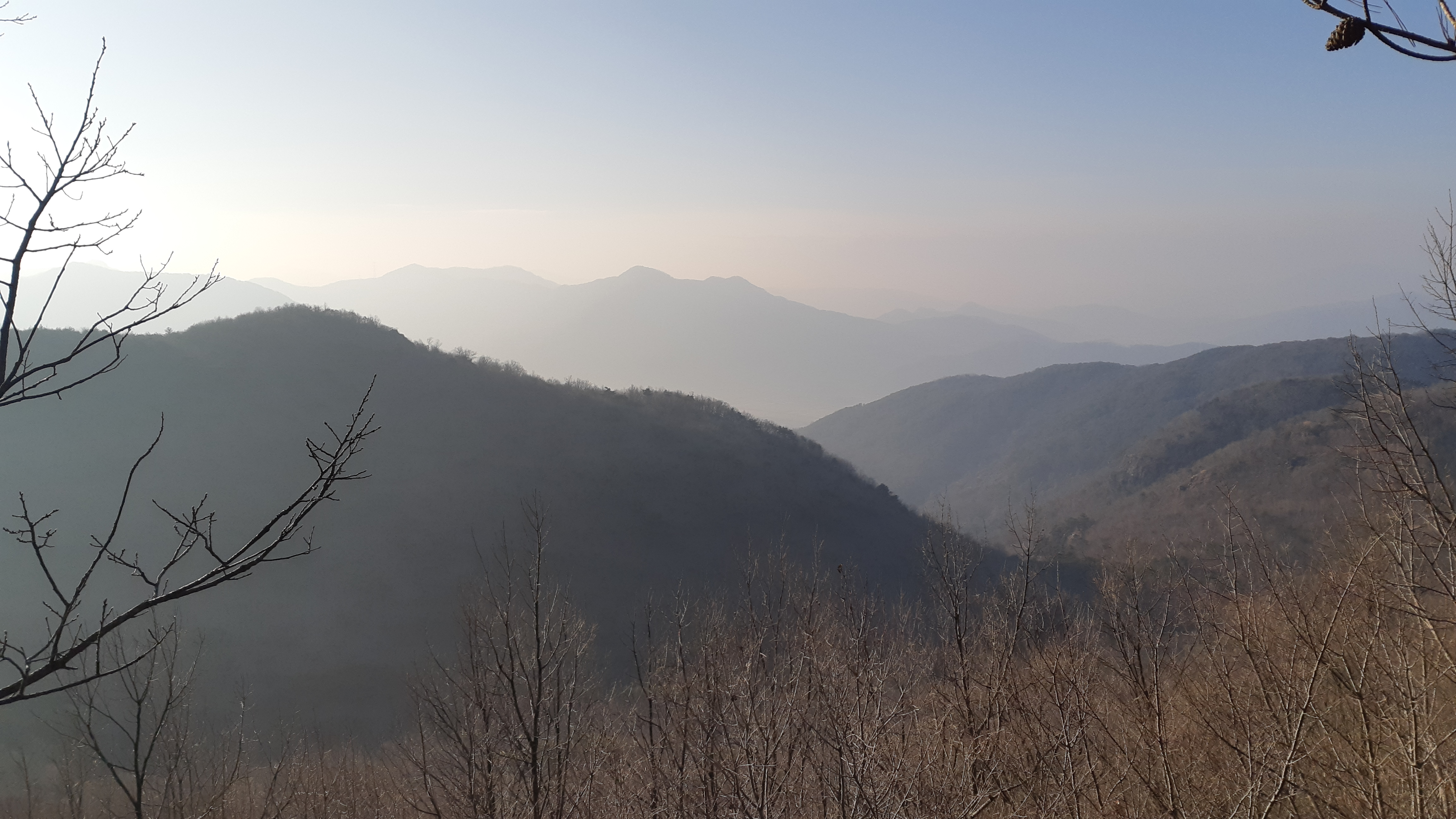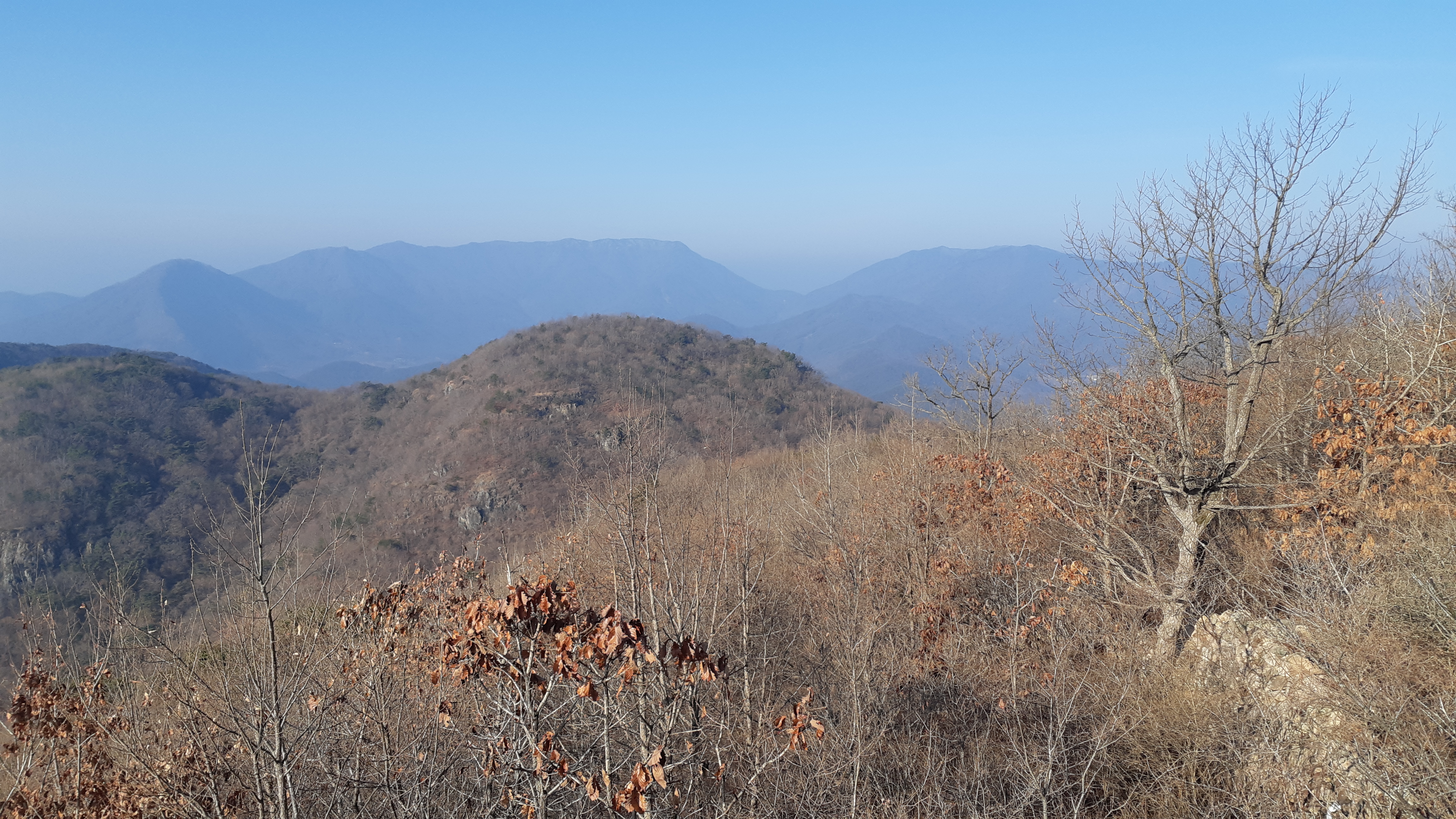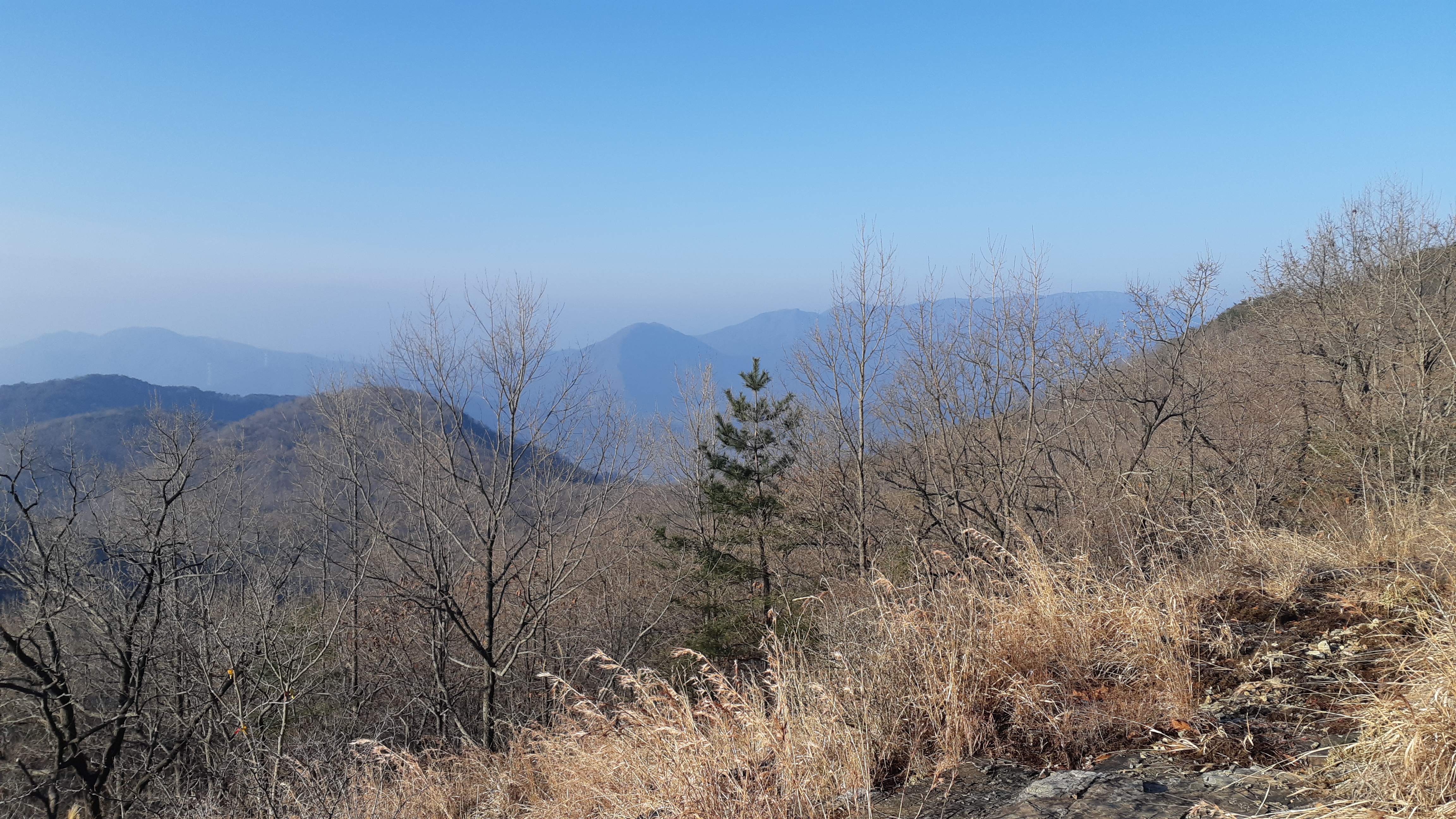 조망바위에서 바라본 멀리 옥교산 능선(09:18)