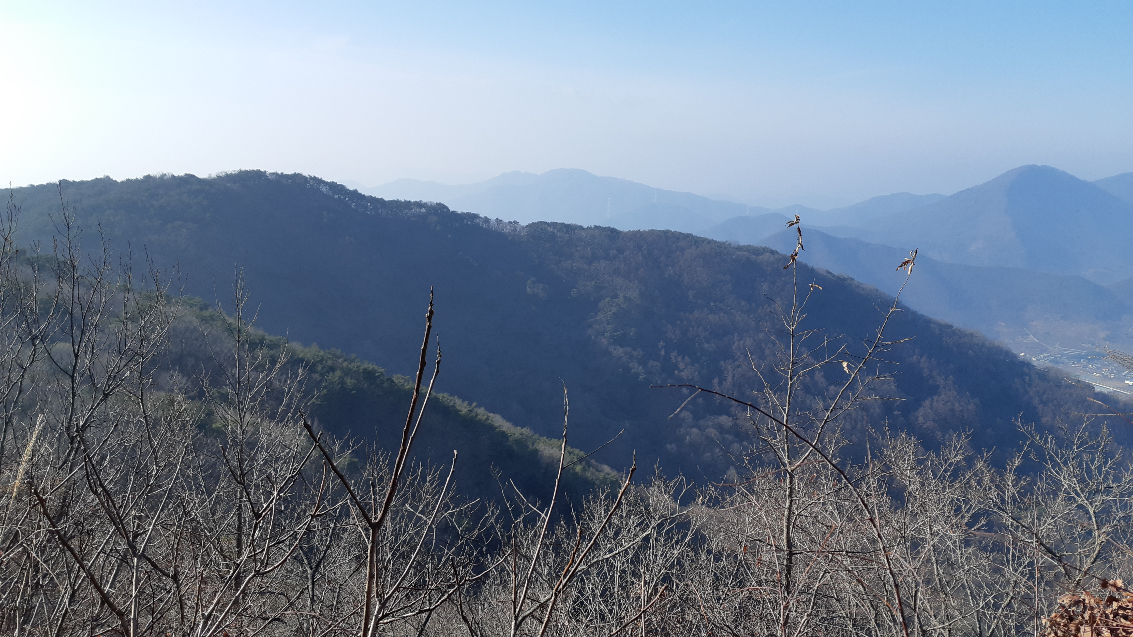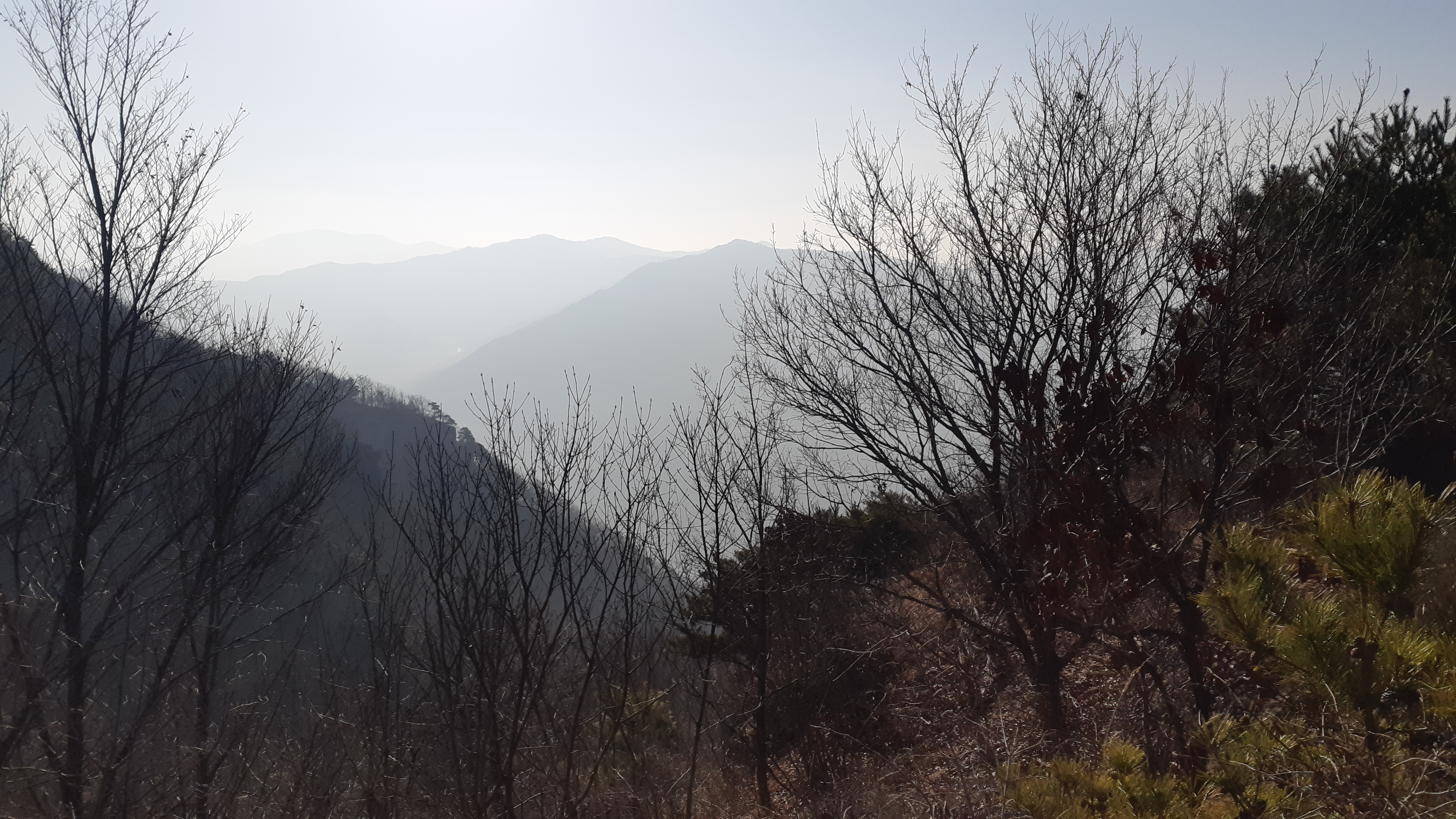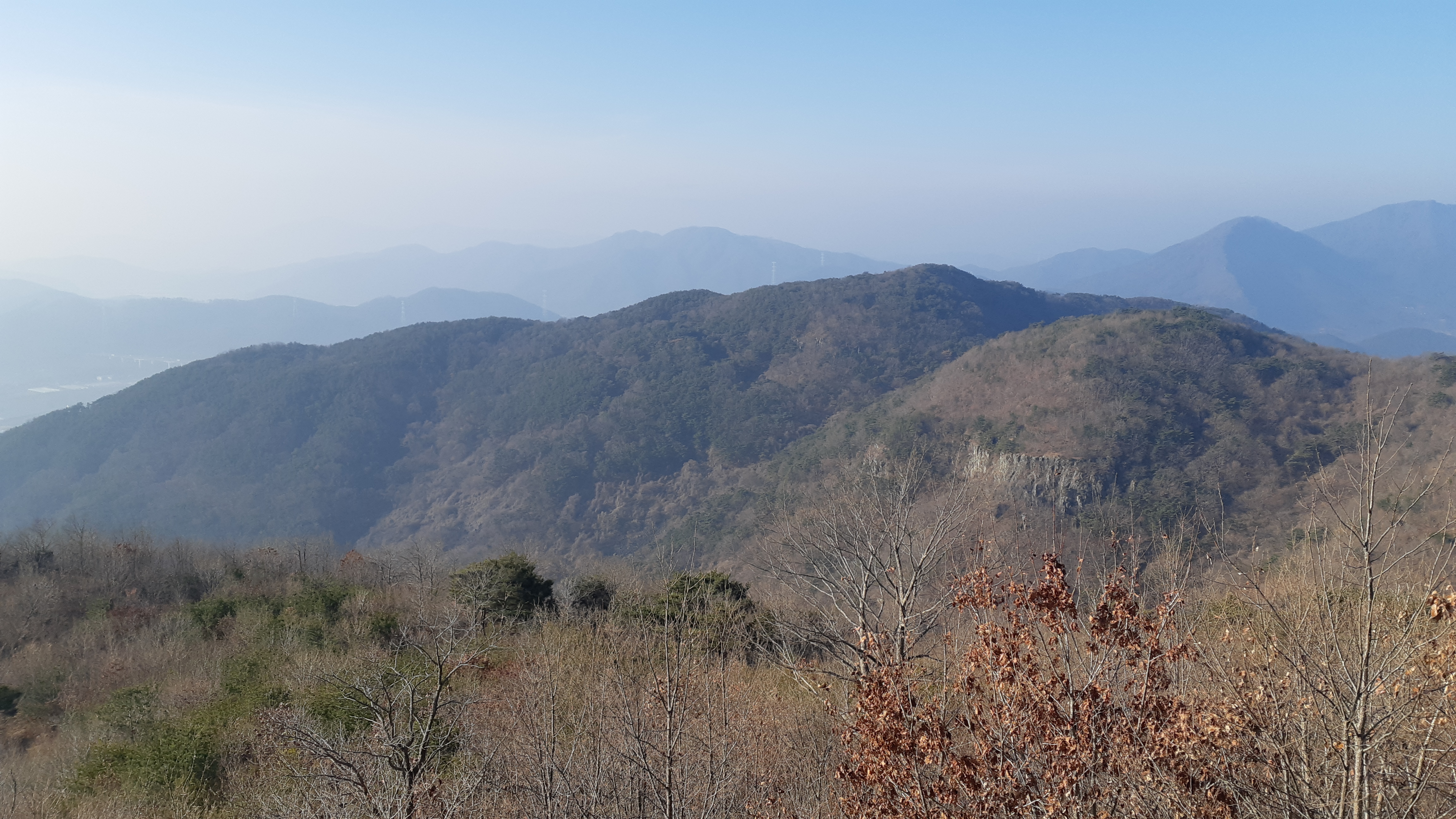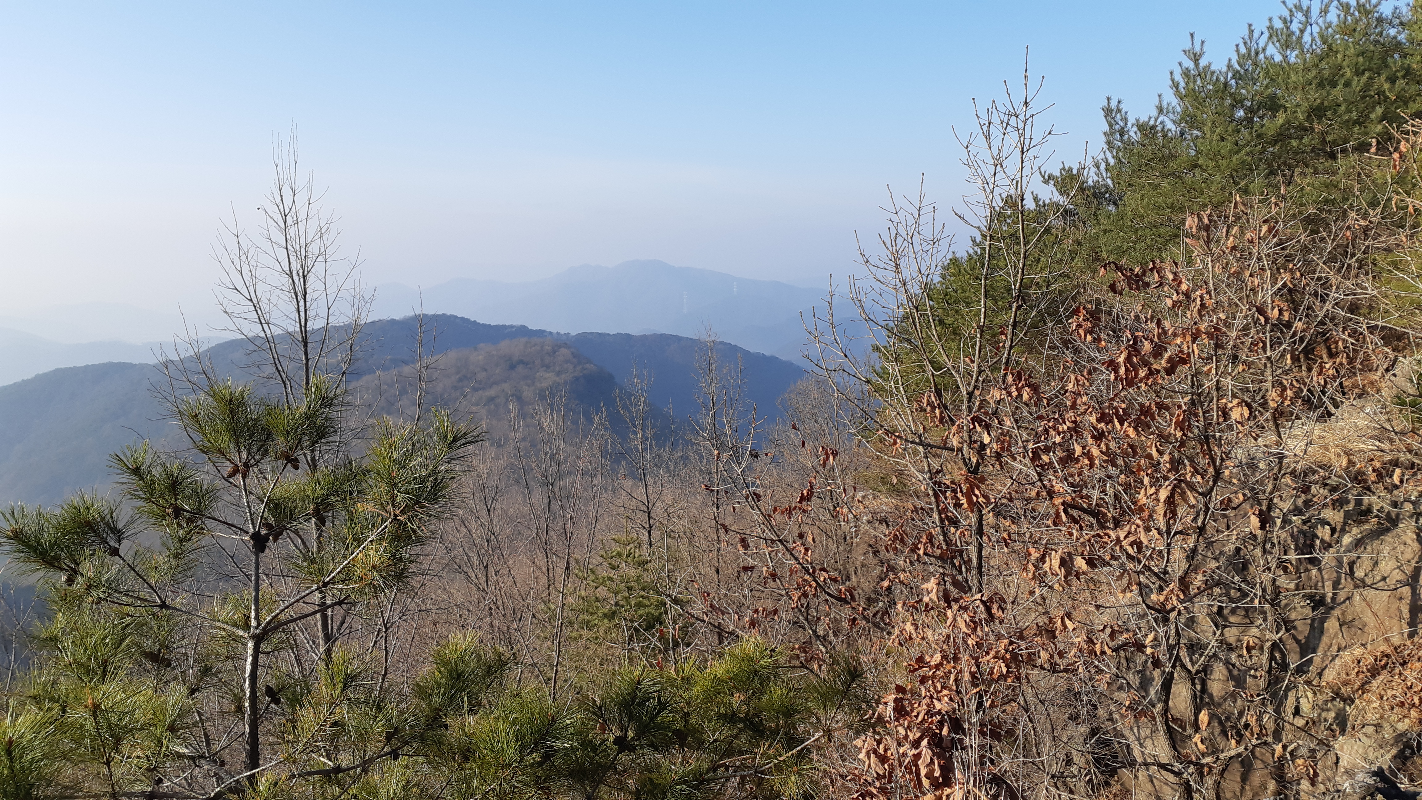 조망바위에서 바라본 멀리 옥교산 능선(09:18)