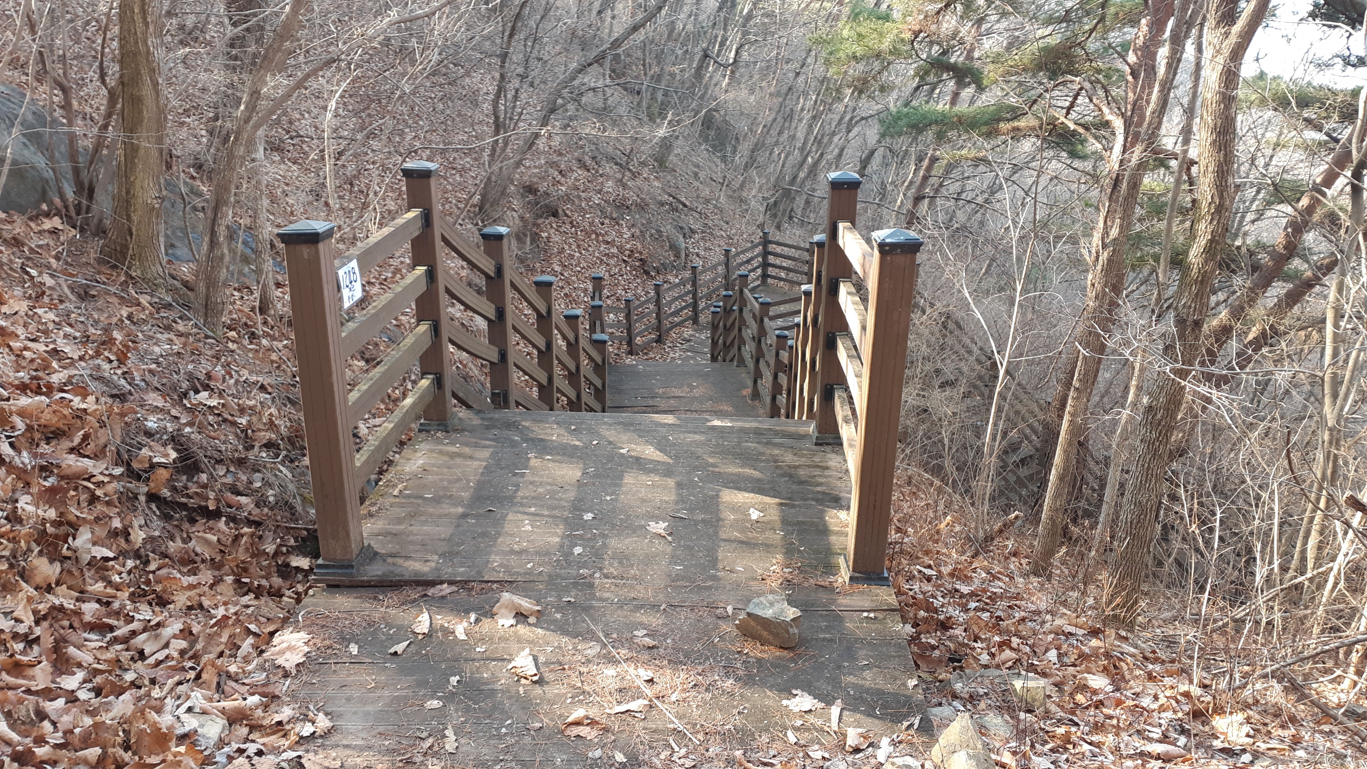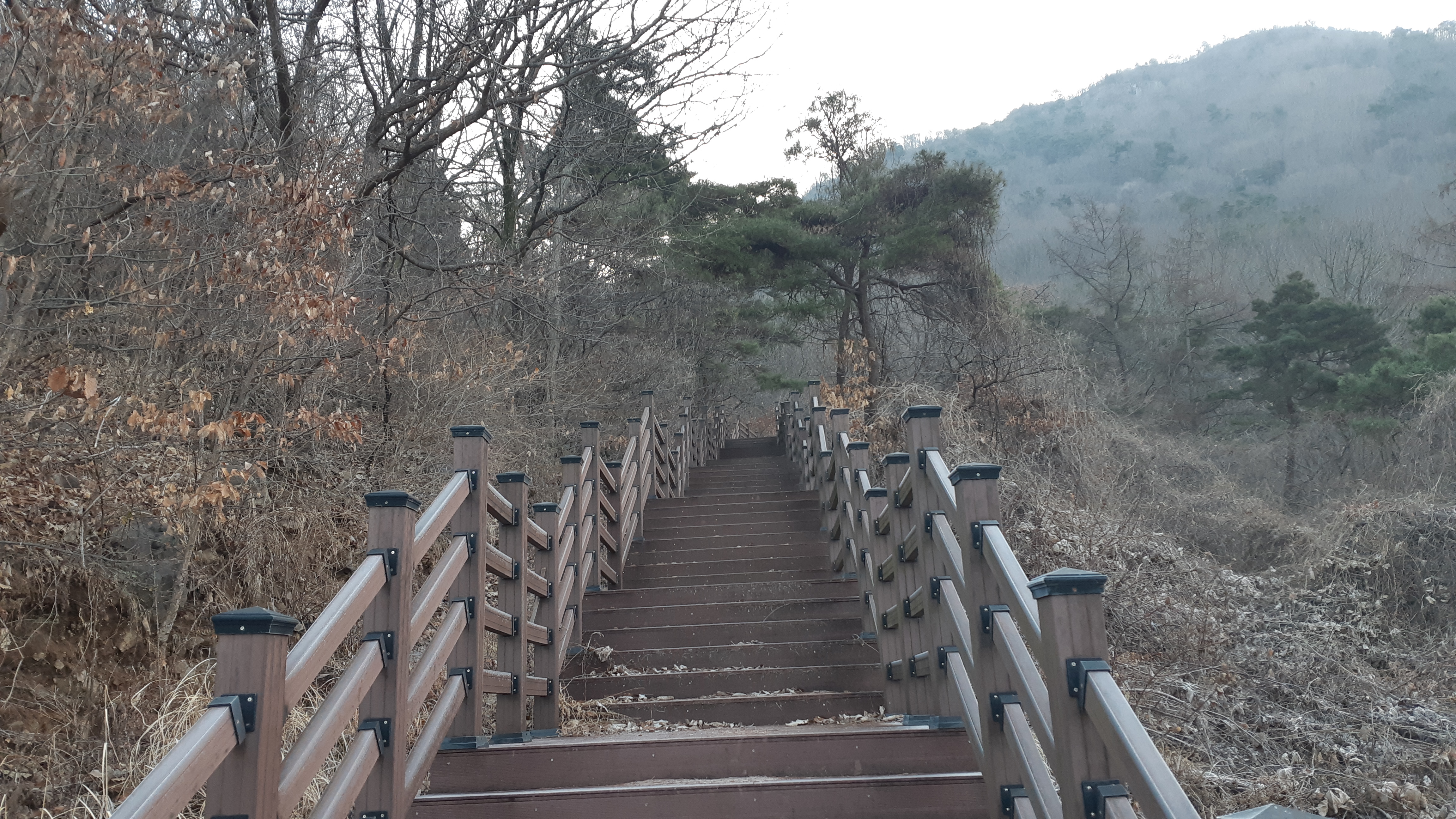 나무텍 계단이 서문지 입구까지 이어진다(07:48)