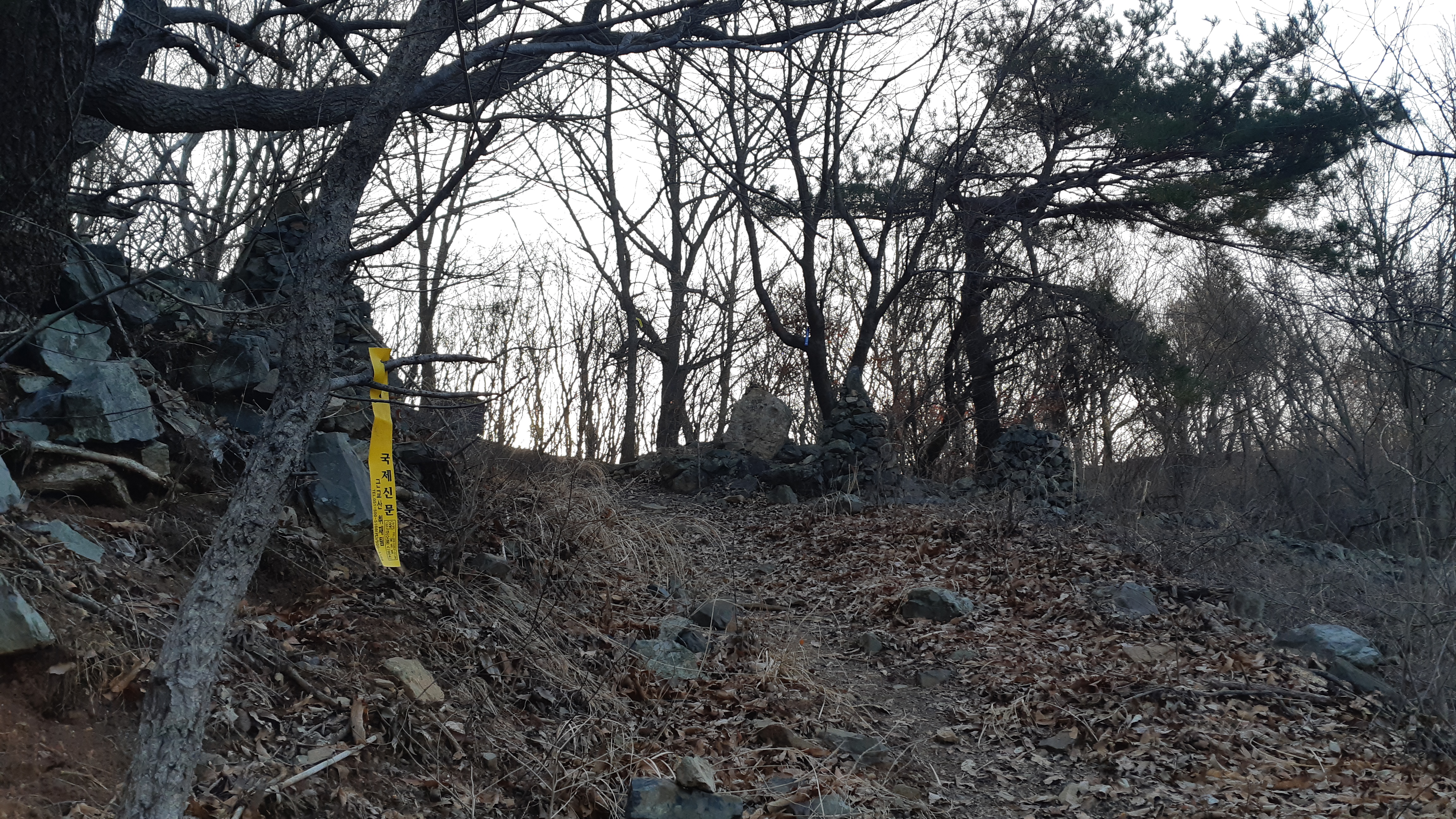 오례산성의 흔적뒤로 곧 오를 오리산(09:24)