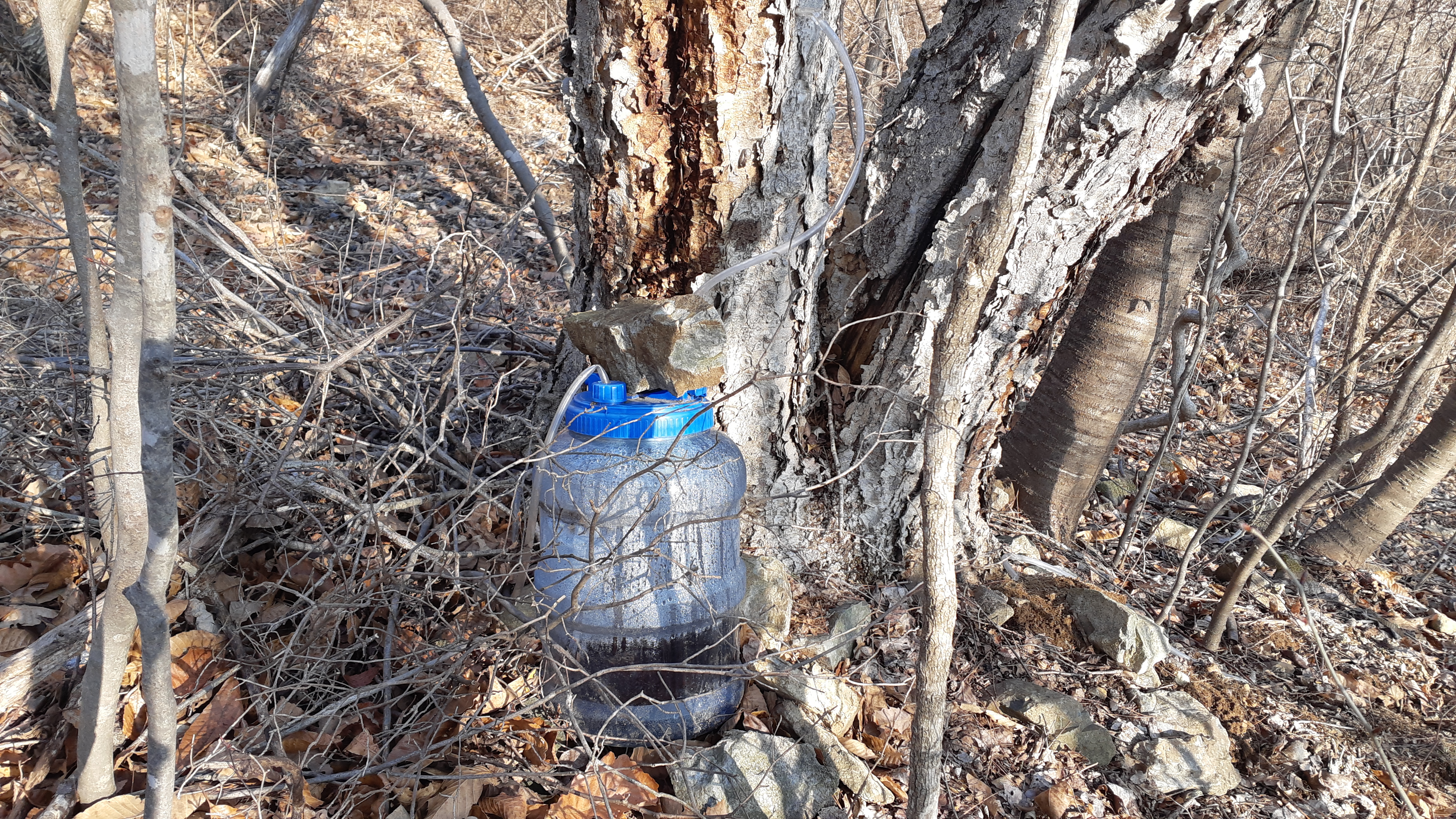 길 섶에 고로쇠수액을 채취하고 있는곳이 있다(09:41)