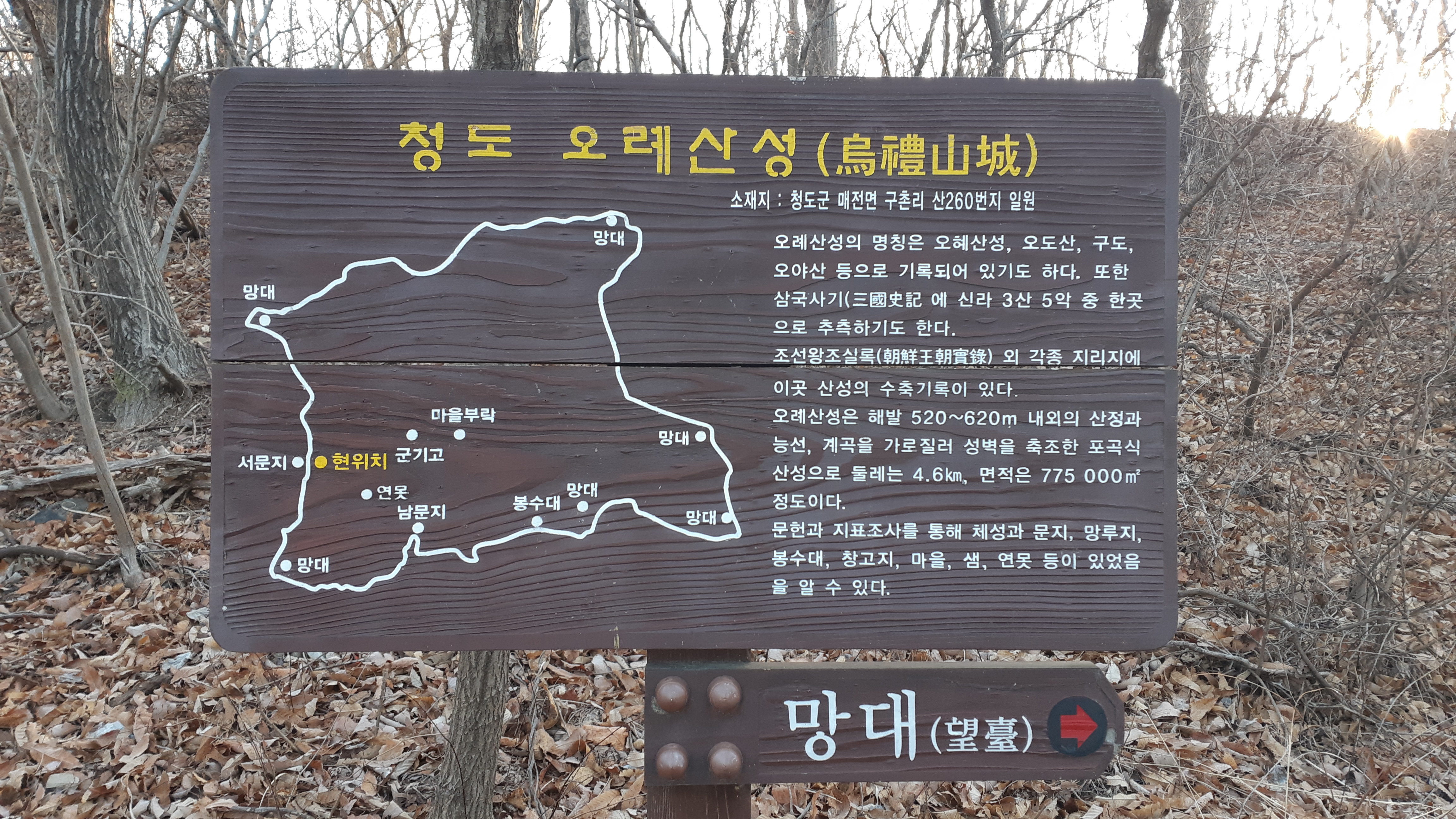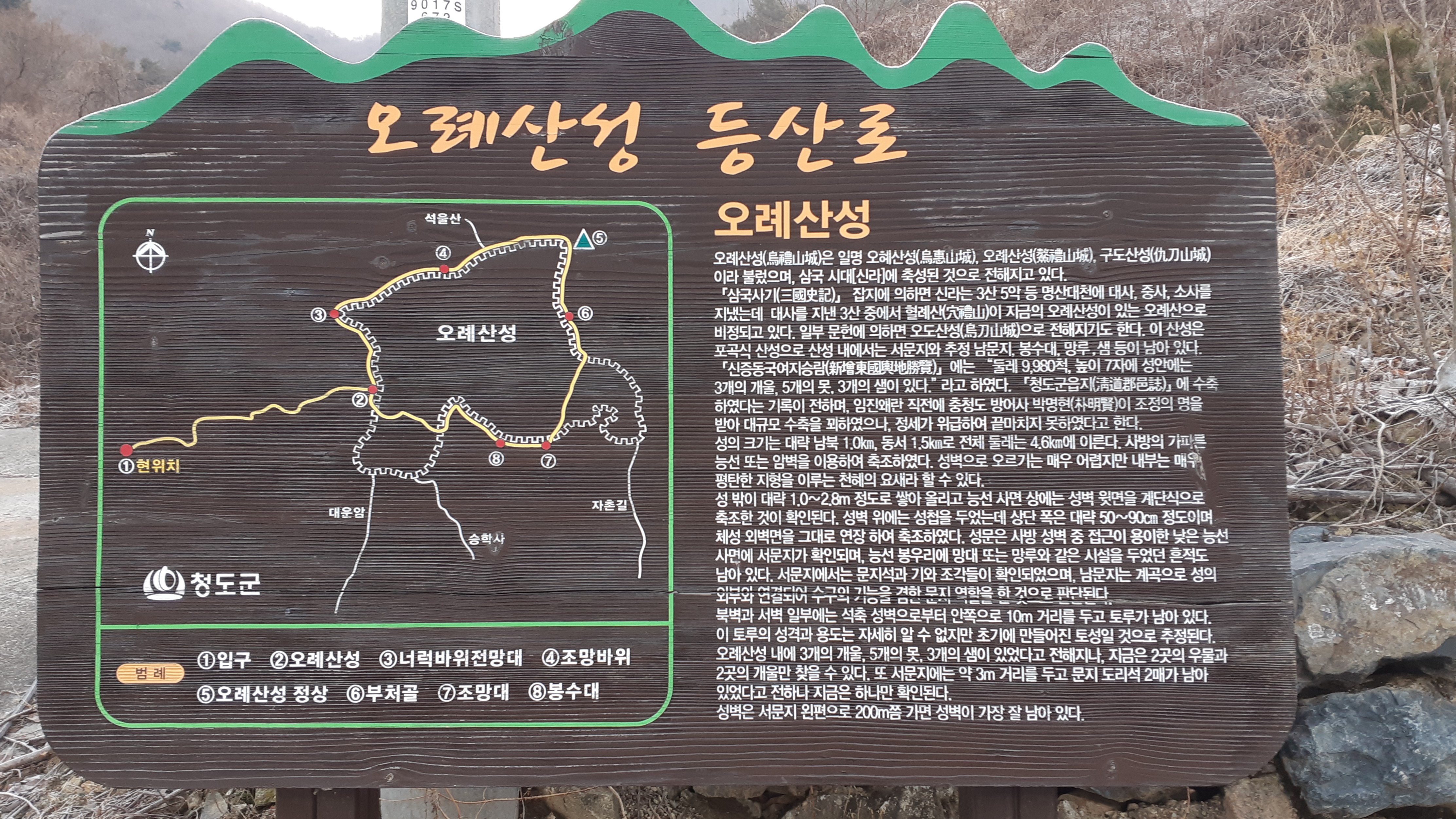 오례산성 등산안내도/삼국시대인 신라에서 축성 되었다고 기록되어있다(07:37)