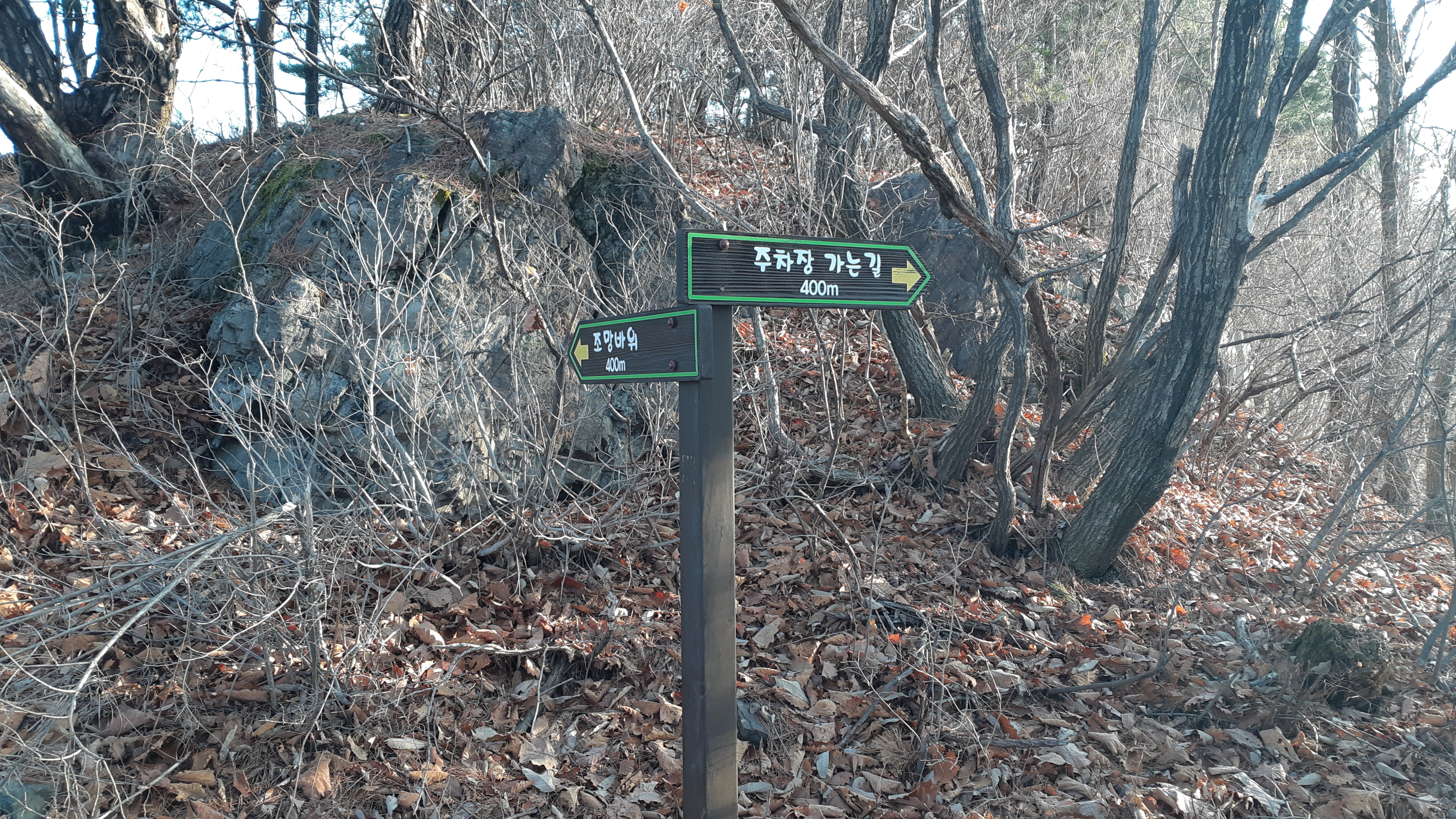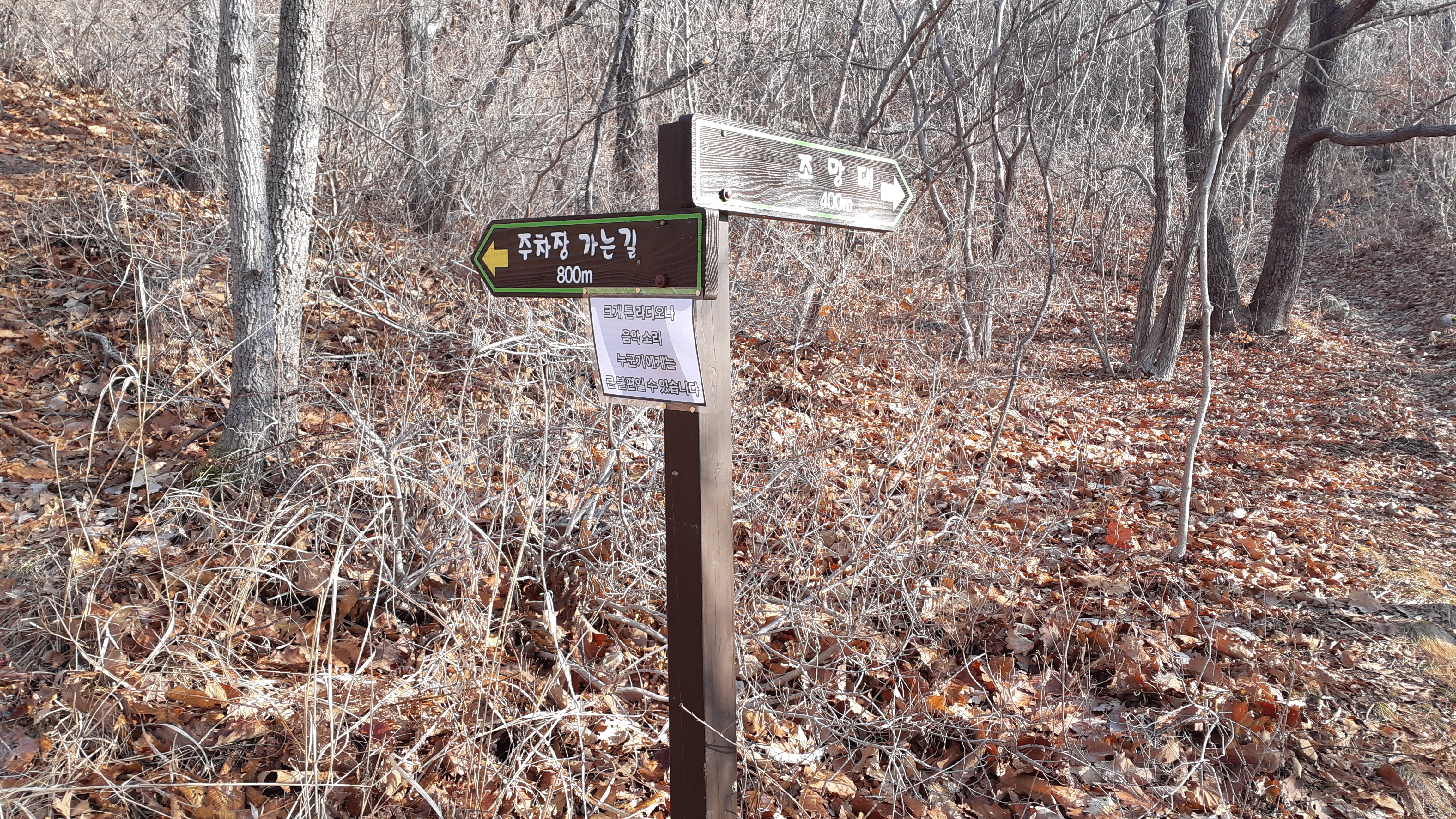 조망바위 가는길의 이정표/조망바위를 찾지 못하였다(08:28)