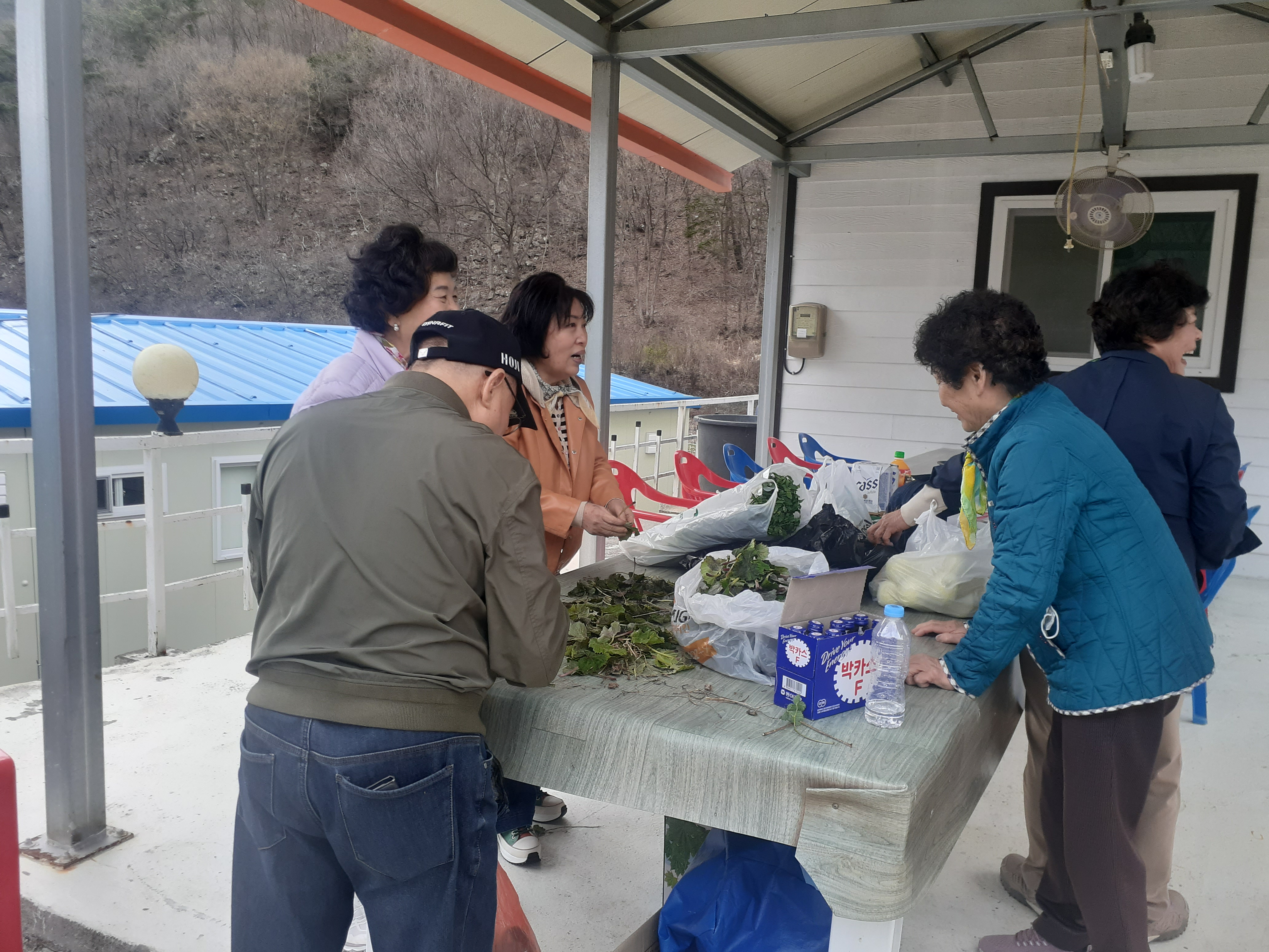 먼저 승순 총무님이 텃 밭에서 정성스레 키운 머위를 손질한다